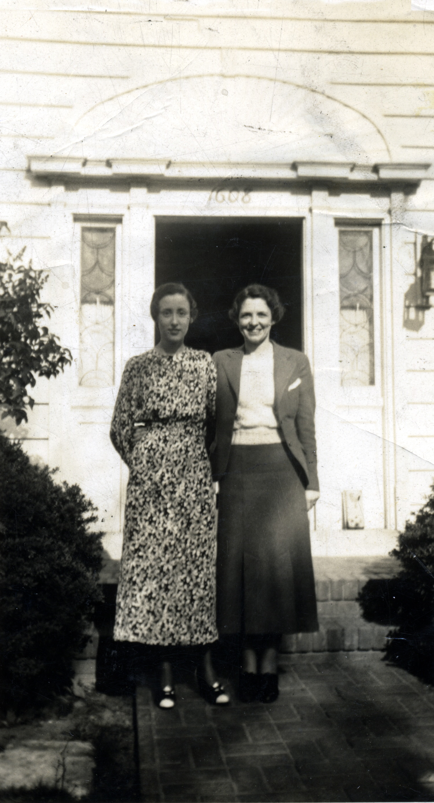 - Mrs. Baird and Miss Cobb standing at north end of Girl’s Industrial Building, c. 1930s. [X_100_workers_2563_mod.jpg]
