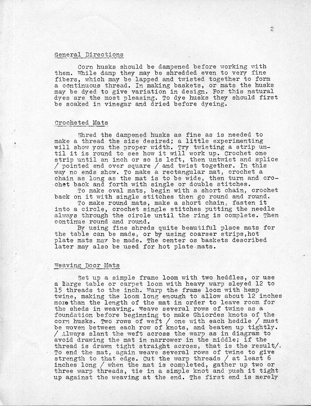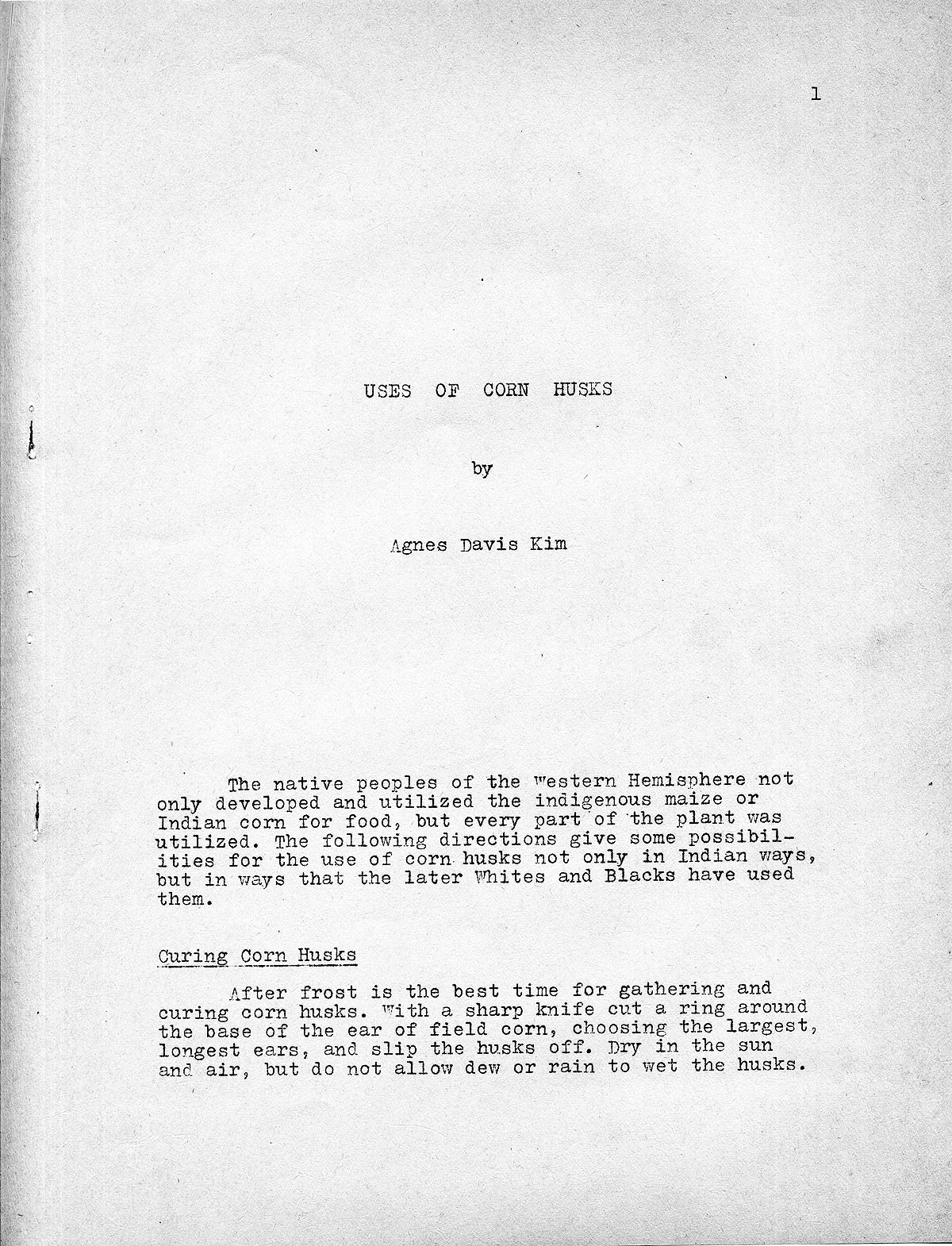 This small instructional guide called “Uses of Corn Husks” by Agnes Davis Kim tells the instructor that