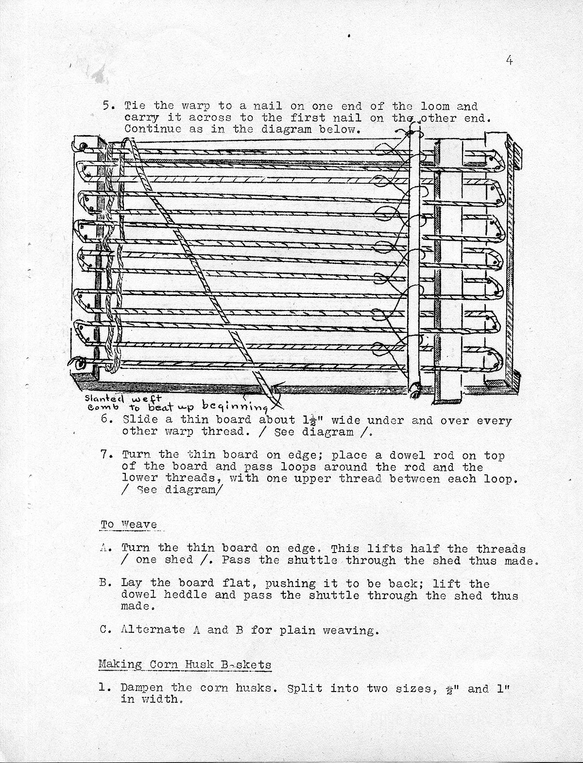 TAGS: corn husks, crafts, industrial arts instruction, Industrial Arts Cooperative Service, Pine Mountain Settlement School, rugs, weaving, baskets, dolls, tamales, teachers, children, education