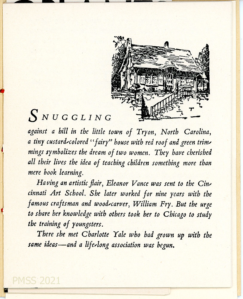 [toys_002] History of two women, Eleanor Vance and Charlotte Yale, who began the toymaking enterprise for young people. (Continued on next page of brochure.)
