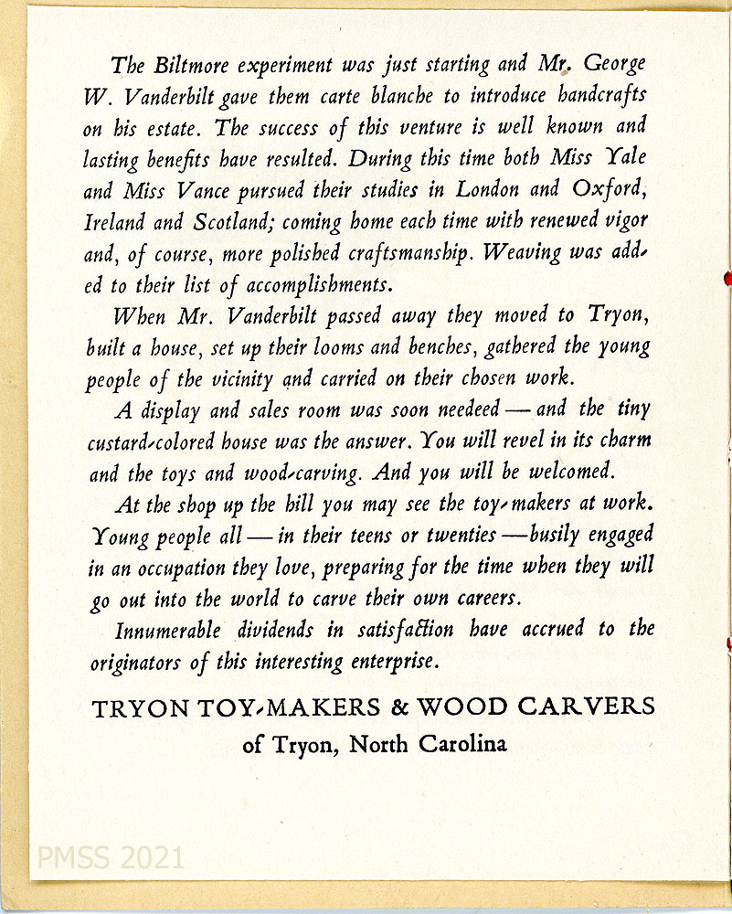 The TRYON TOY-MAKERS and WOOD-CARVERS of Tryon, North Carolina.