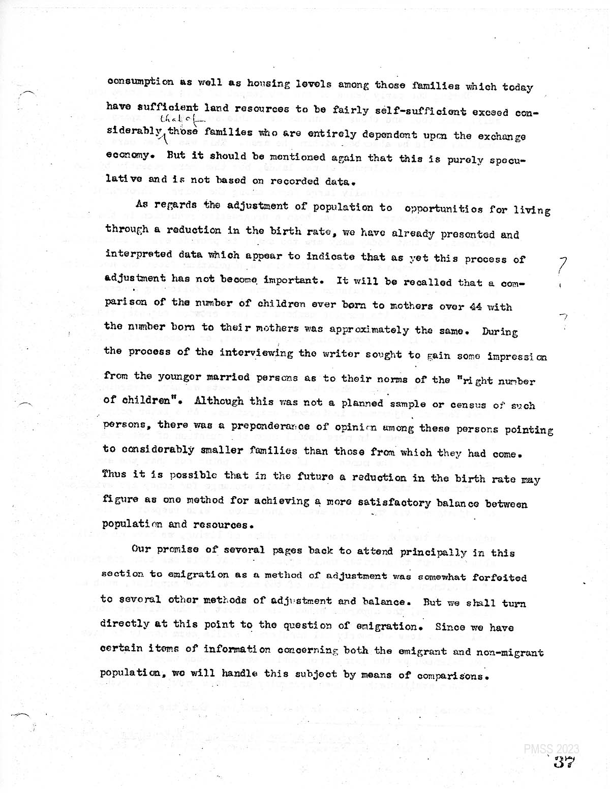 ……..estimate approximately 450 acres in cultivation. When variations in acres cultivated were related to variations in the value of home production, a definite association is observable. But the correlation must be quite small. The general picture of land holdings is that of a high degree of ownership of very small scale operations. TheĀ  gross comparison of size of household in home production without any refinements for the age , health and other variants among the households Indicated a fairly clear relation, such that the two series increase together. The preceding comparisons with the variations in value of home production have been the measures of land and labor. If we turn now to such indices of capital as the ownership of livestock, with hogs as a specific case, we find evidence of a positive relation as one would expect. The comparisons we have prepared are all of a relatively low degree of correlation, and we must acknowledge that there are factors, perhaps, of greater importance, which we have not considered in this analysis ofĀ  variations in home production. The most important are probably the most elusive and the most obvious are probably the least important. Probably the controlling factors are those very real, but hard-to measure items of attitudes, values, knowledge, family solidarity and morale.