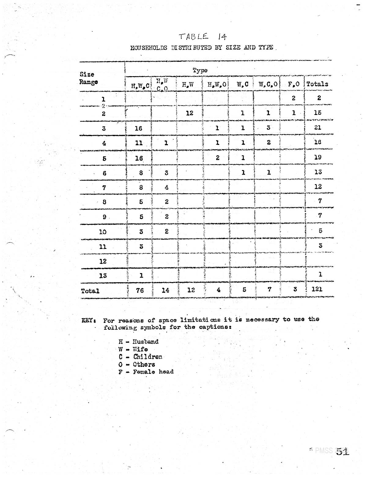 HOUSEHOLDS DISTRIBUTED BY SIZE AND TYPE