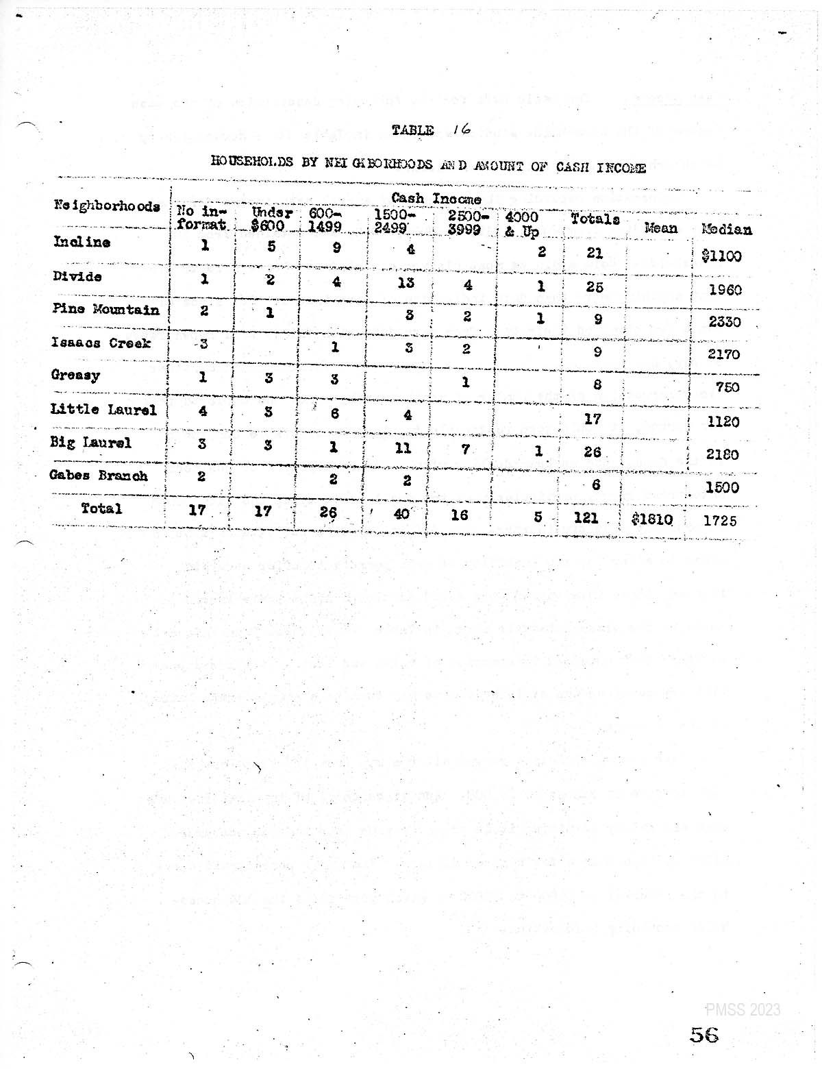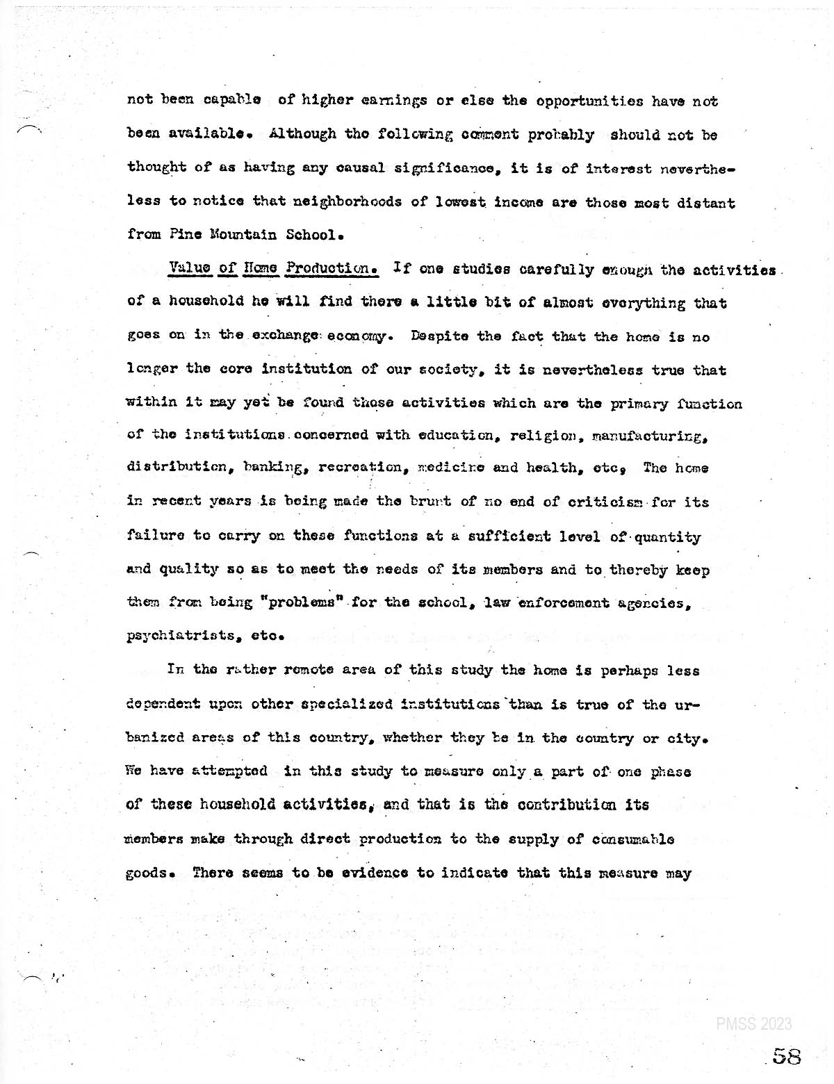 Not incapable of higher earnings or else the opportunities have not been available. Although the following comment probably should not be thought of as having any casual significance, it is of interest, nevertheless, to notice that neighborhoods of lowest income. Are those most distant from Pine Mountain School.
