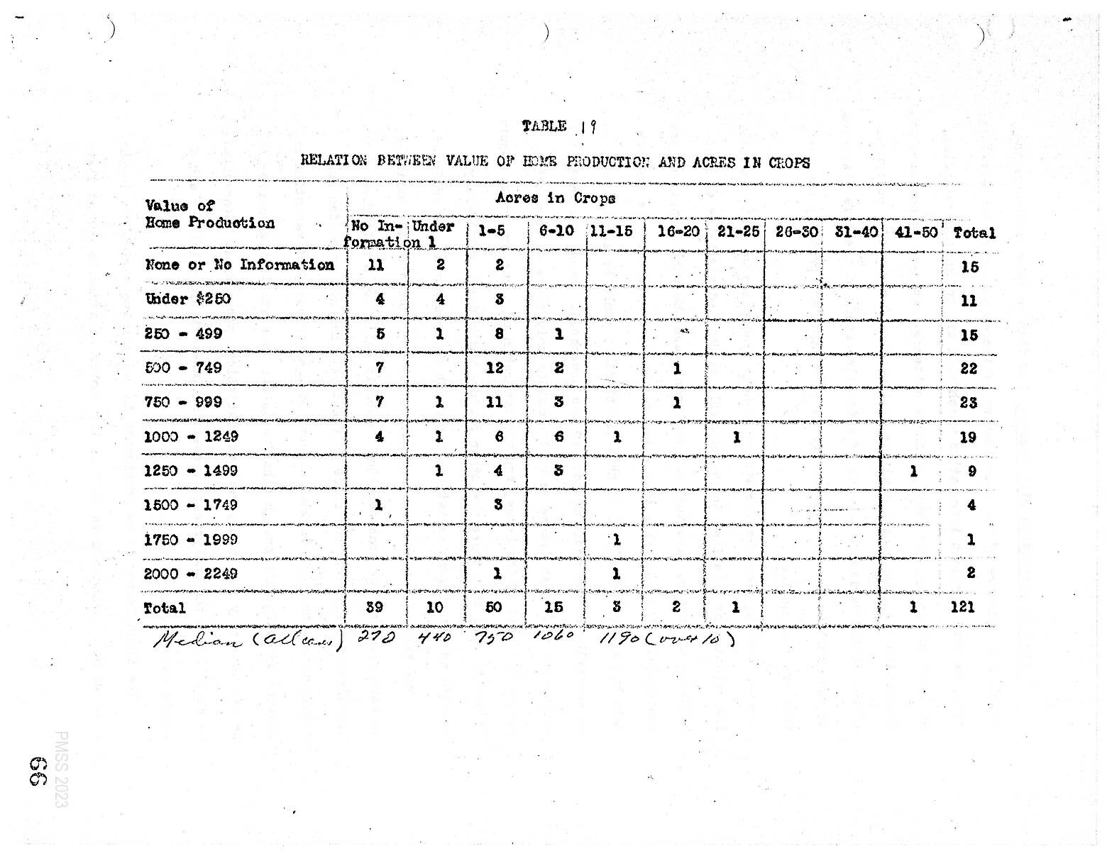 TABLE 19   RELATION BETWEEN VALUE OF HOME PRODUCTION AND ACRES IN CROPS