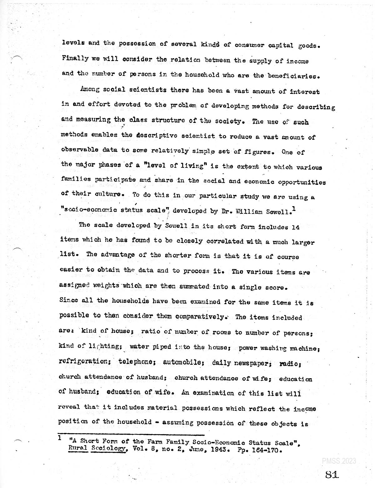[1.] ” A Short Form of the Farm Family Socio-Economic status scale.” Rural Sociology, Vol. 8, no. 2, June, 1943. pp. 164-170