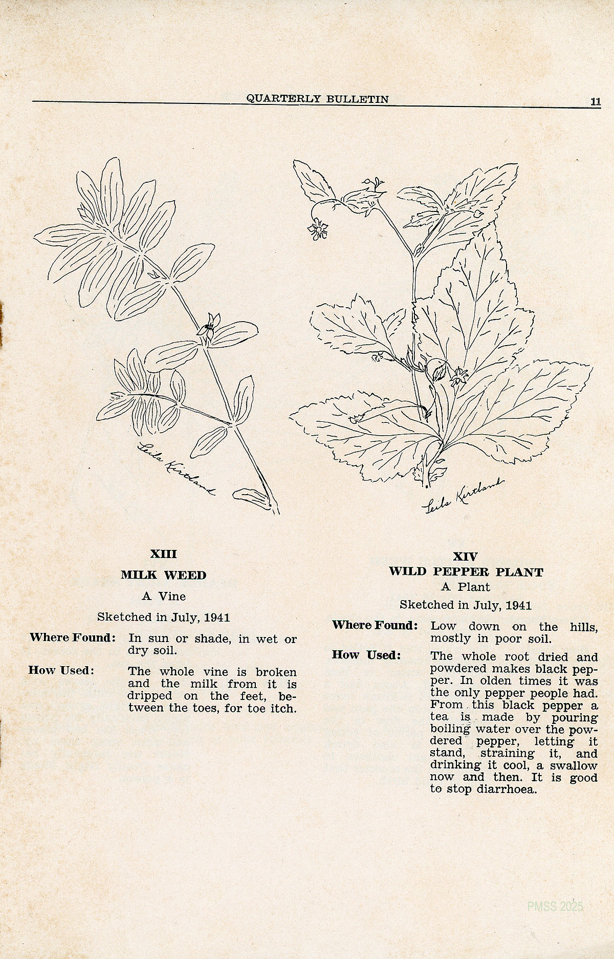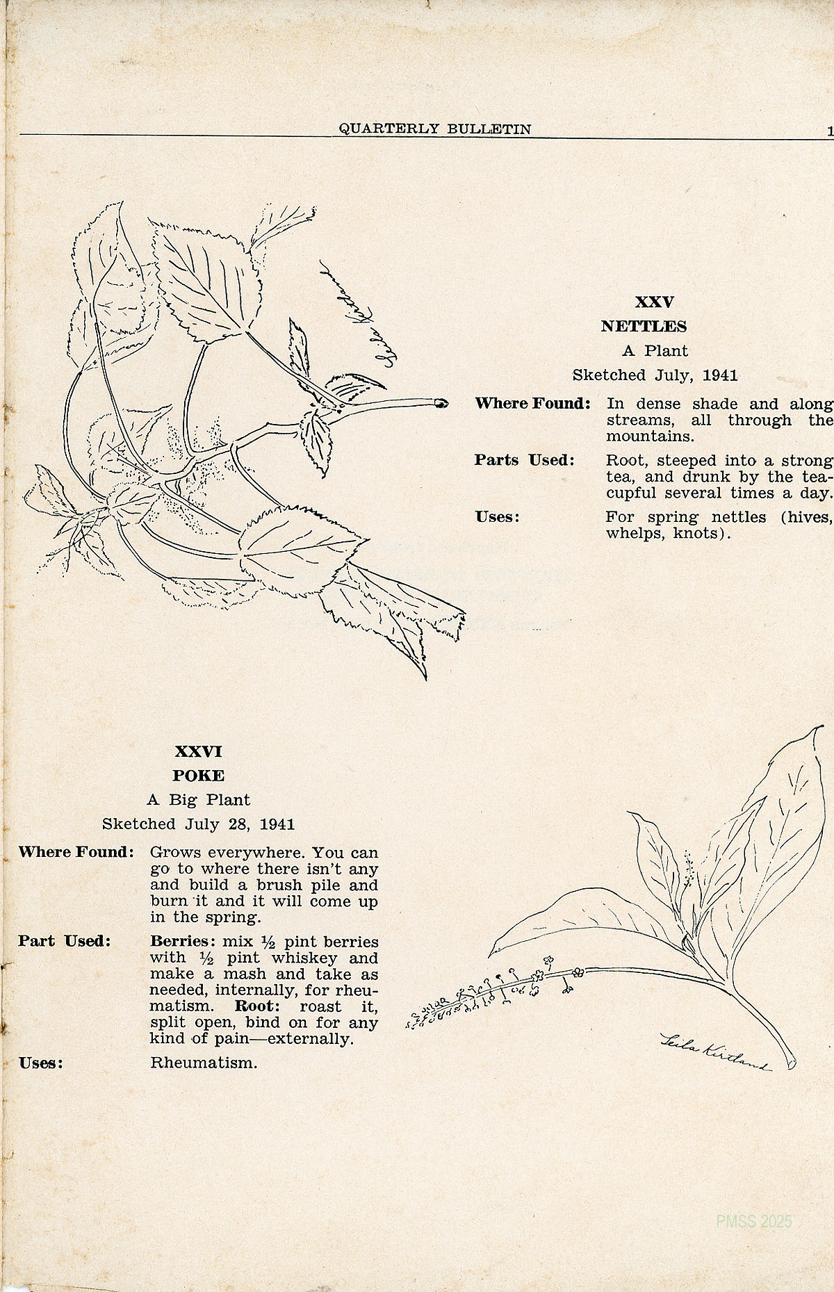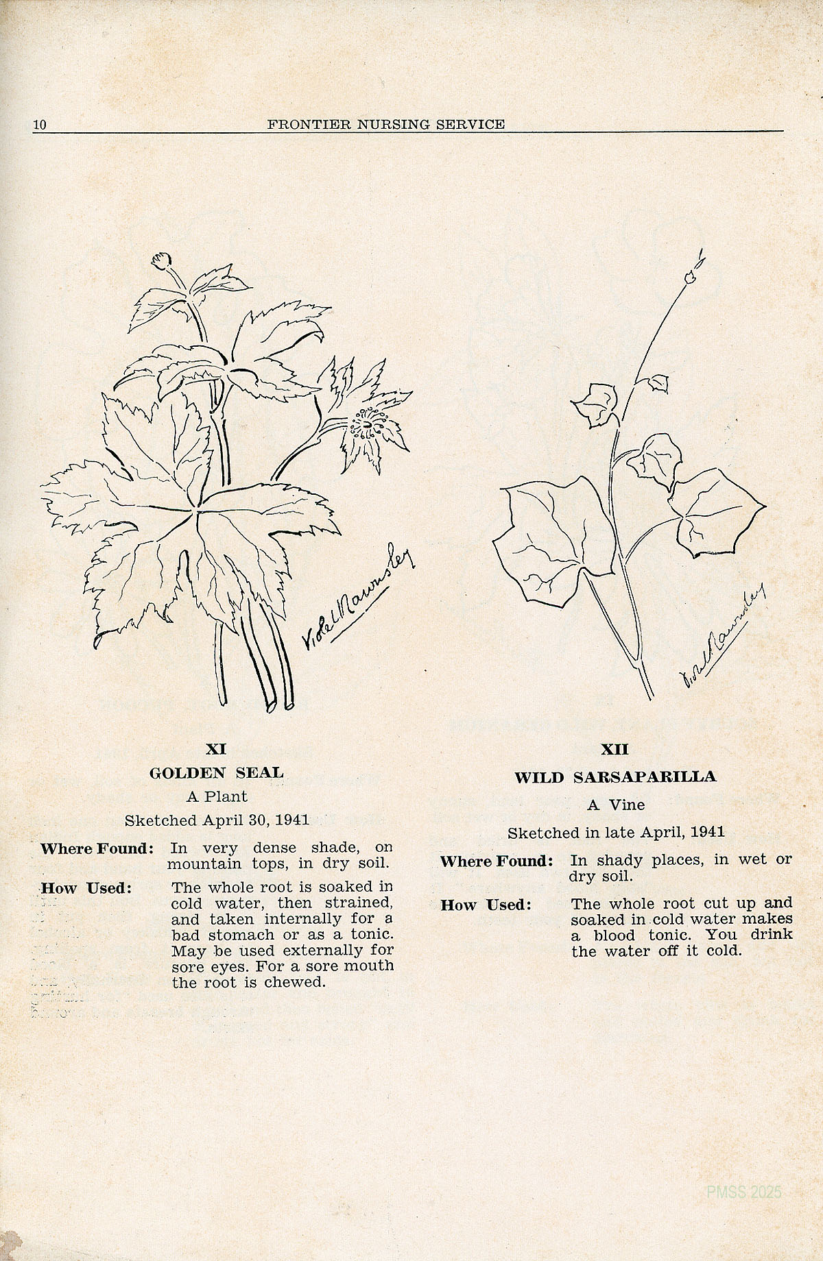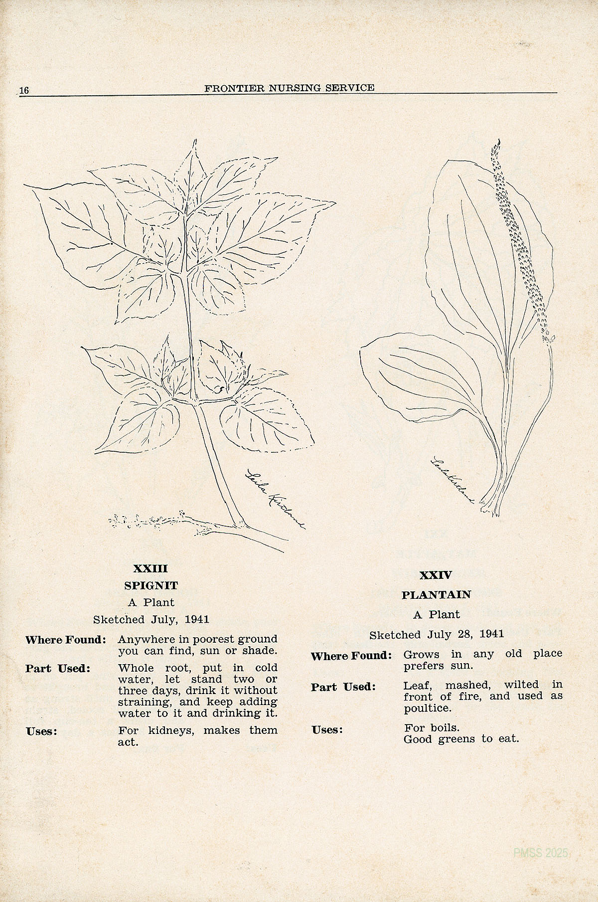 TAGS: Quarterly Frontier Nursing Service Bulletin, Frontier Nursing Service, Mary Breckinridge, Katherine Pettit, health issues of eastern Kentuckians, drawings by Mrs. Noel Rawnsley and Miss Leila Kirtland, yarbs, Miss Belle Morgan, Dorcas Wilson Cornett, medicinal plants