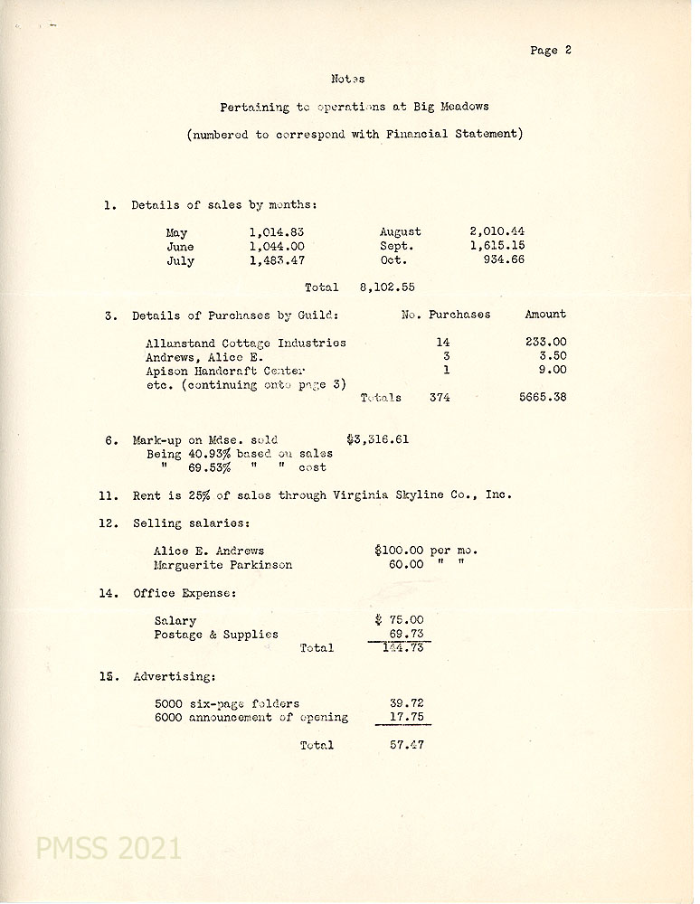 [013] Page 2 of Big Meadows financial statement. “Notes Pertaining to operations at Big Meadows (numbered to correspond with Financial Statement).”