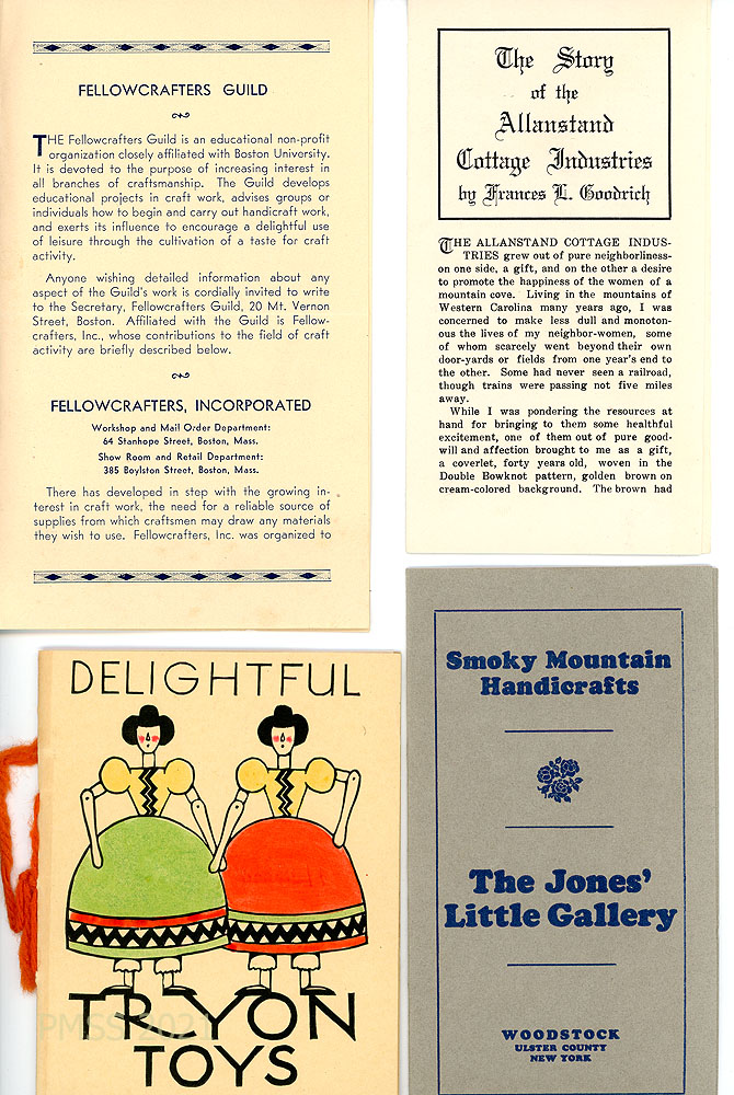 [031] First pages of brochures for Fellowcrafters Guild, Allanstand Cottage Industries, Tryon Toys, and The Jones’ Little Gallery.