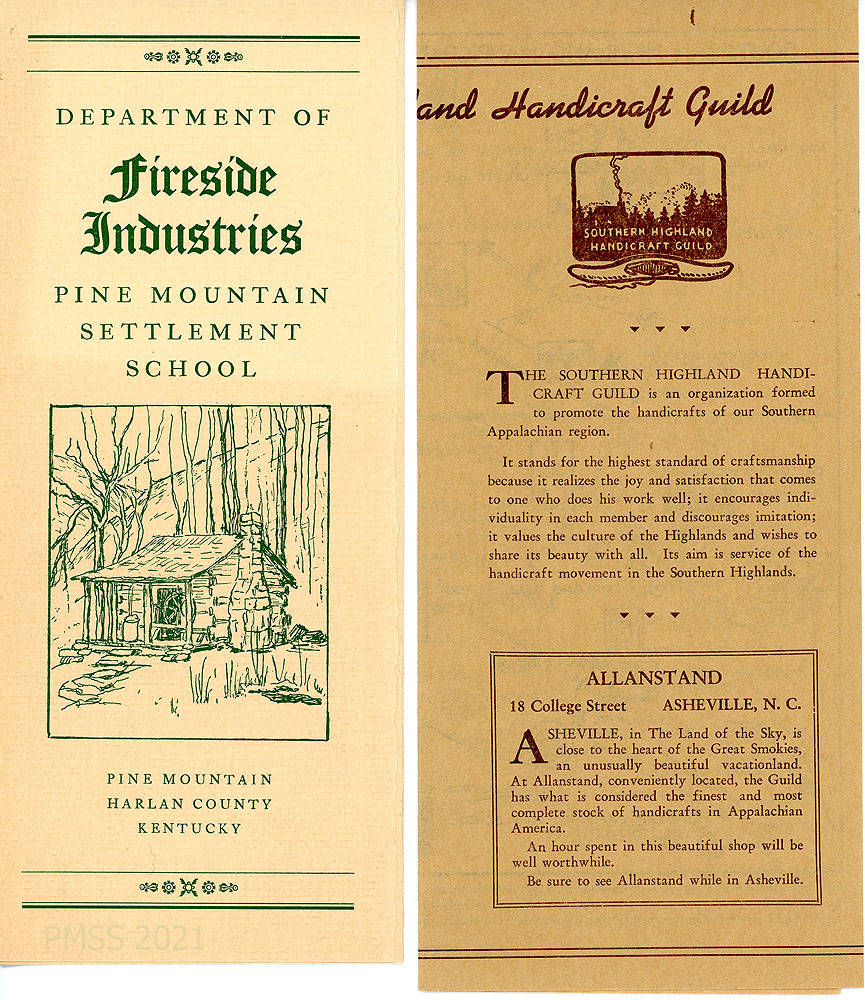 The Southern Mountain Handicraft Guild, an umbrella organization of small institutions with craft programs that sell hand-made crafts to various markets, had a strong presence in many rural settlement schools. Pine Mountain Settlement School was one of the Guild’s producing centers, represented by its Department of Fireside Industries.