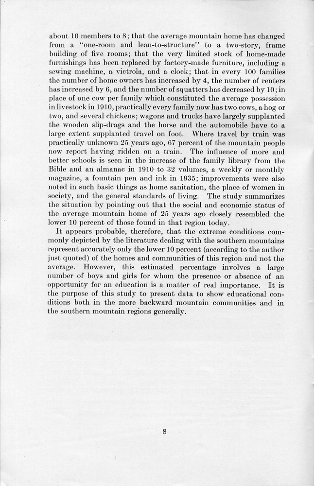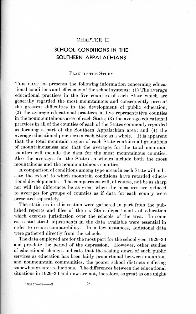 The mountain area of the Southern States has recently aroused unwonted attention on the part of the people of the United States. That economic conditions were unsatisfactory; that social services, including education, were wholly inadequate; and that these conditions, with the isolation prevalent in mountain sections, combined to set the people of these areas apart from normal farming communities, has long been a matter of common knowledge.