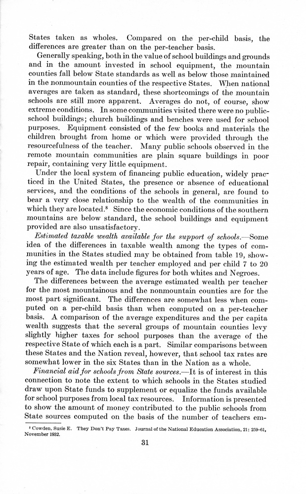 TAGS: Education in the Southern Mountains; W.H. Gaumnitz; Katherine M. Cook; Bulletin 1932, US Department of the Interior; rural education problems;
