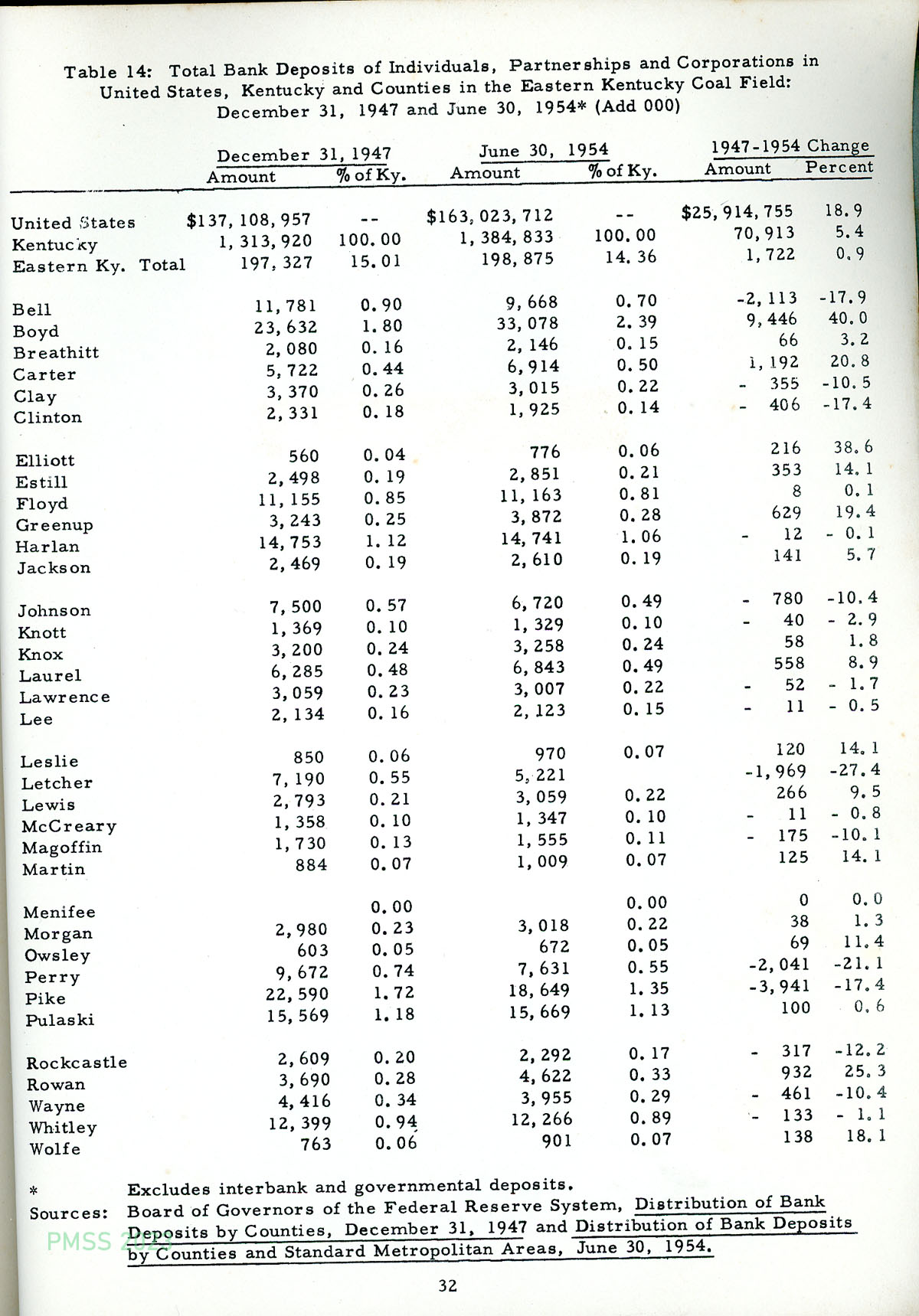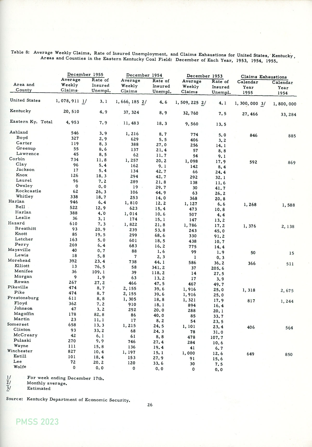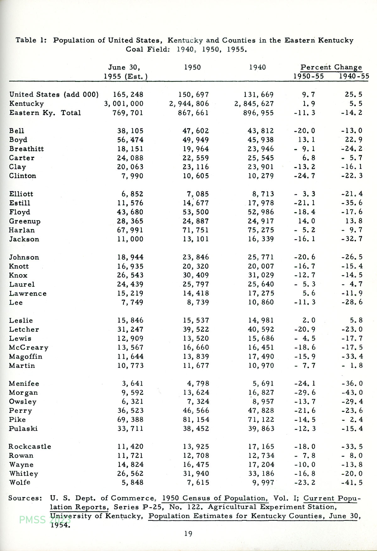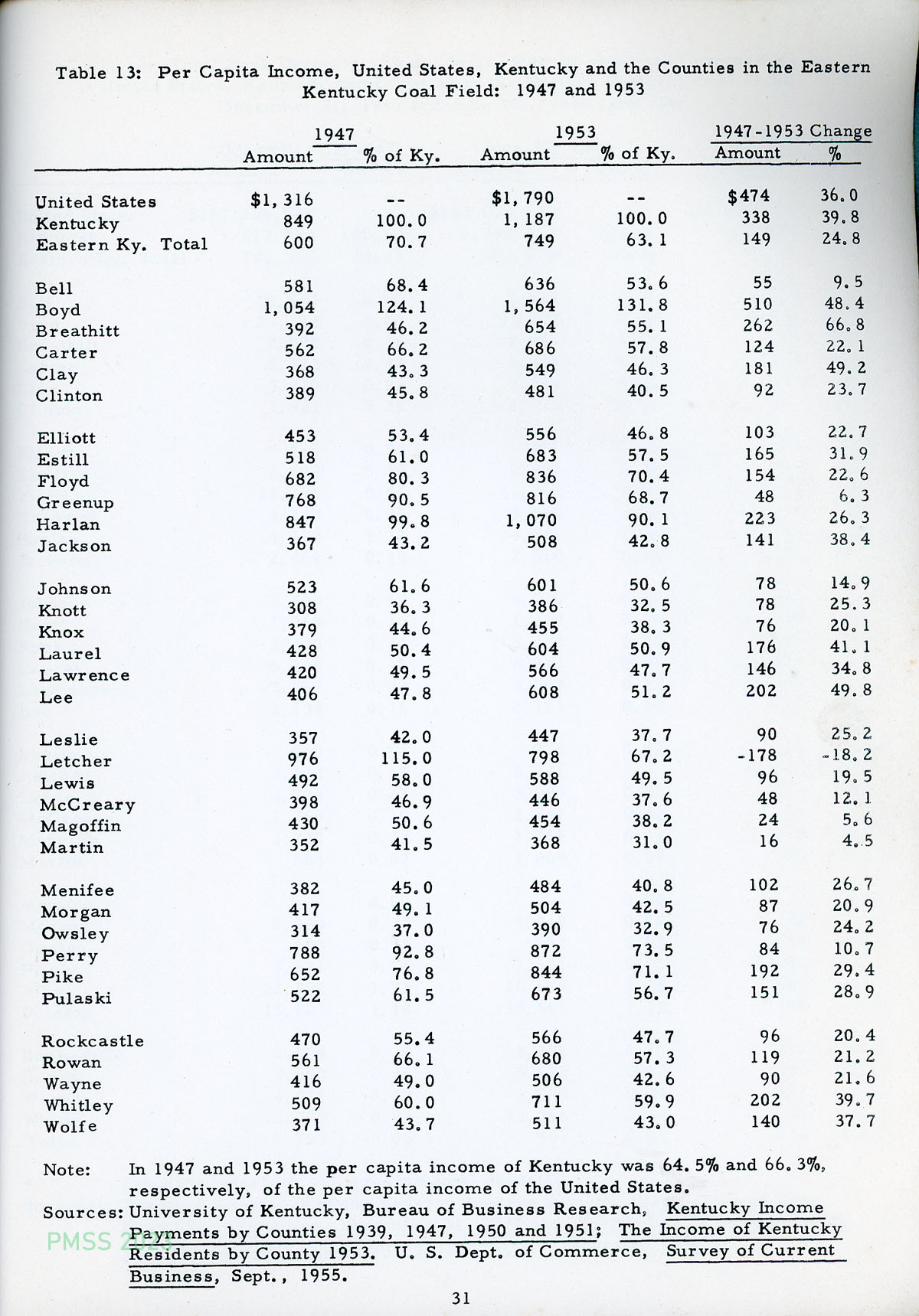 1956 Economic Data Eastern Kentucky