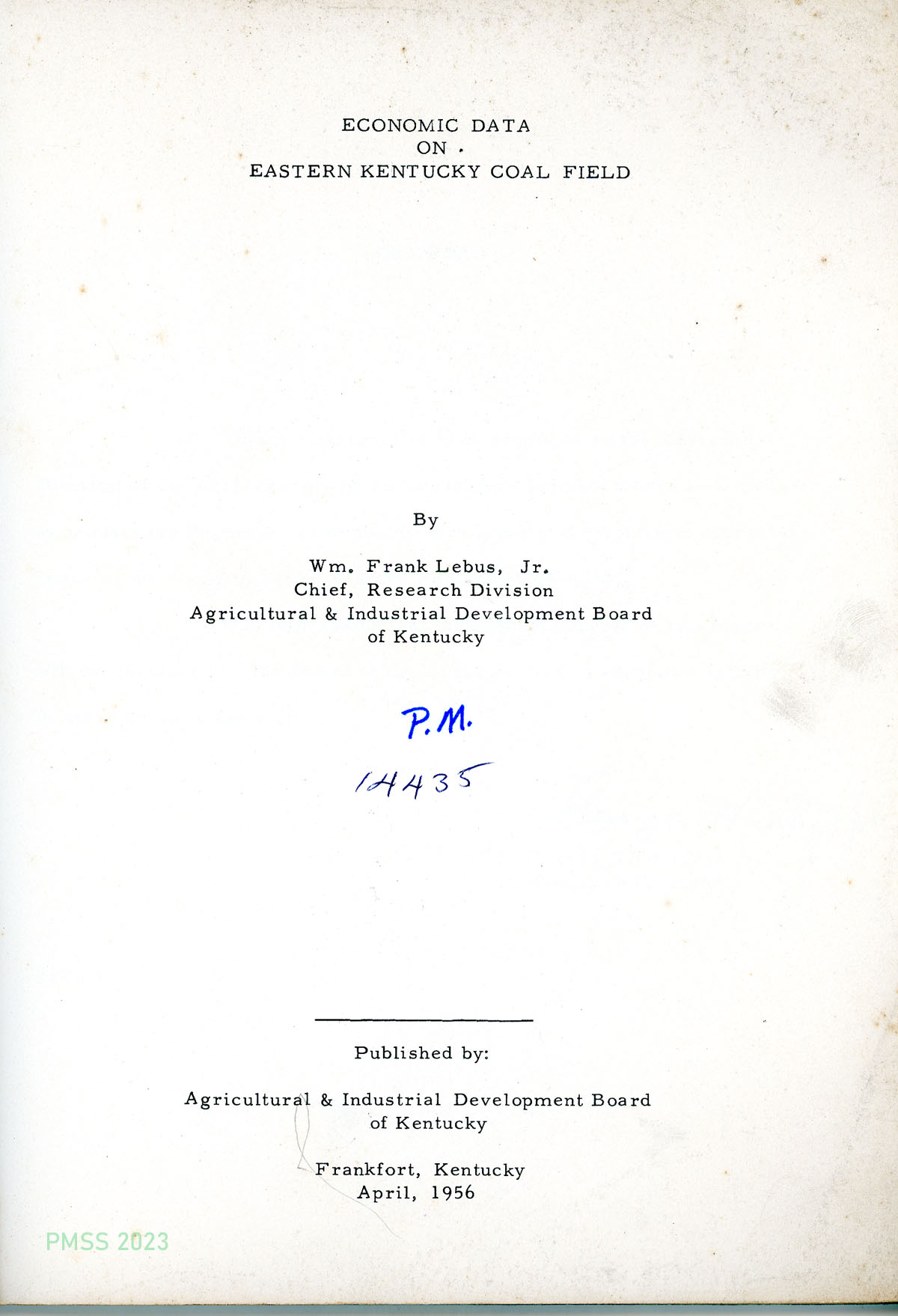 - Title 1956_economic_data_e_ky_coal_field_title