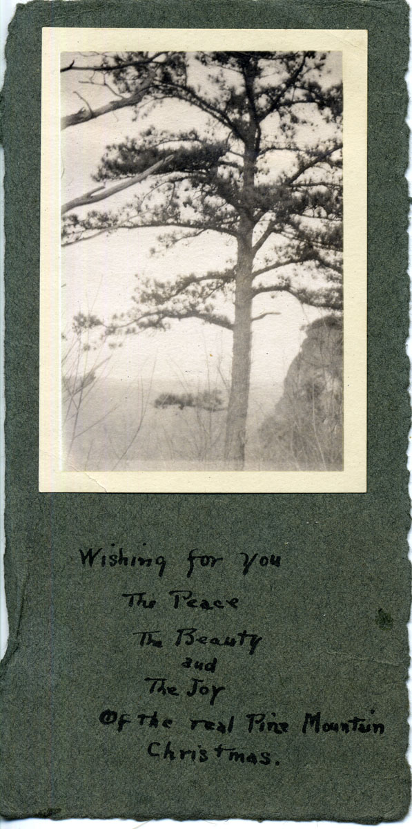 This page, PUBLICATIONS CHRISTMAS CARDS, displays images of Christmas cards that were printed, illustrated, designed, and/or written by Pine Mountain staff workers and students.