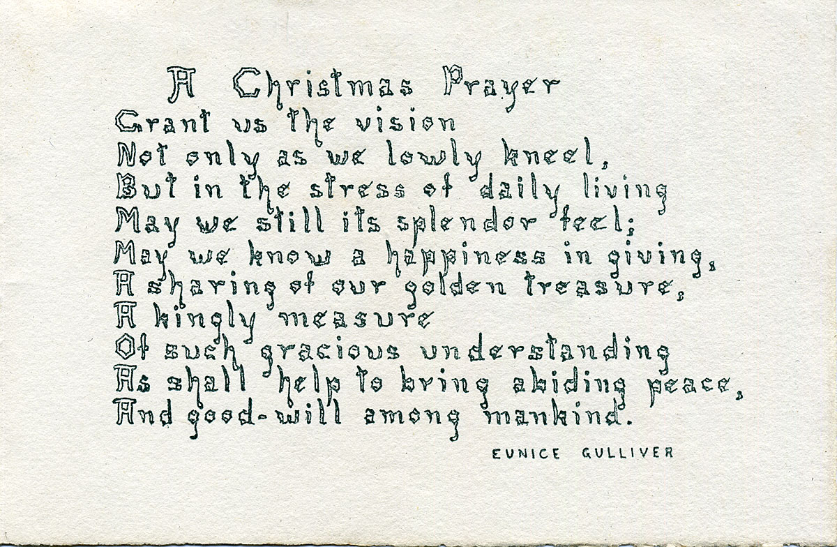 TAGS: Christmas cards, illustrations, staff publications, student publications, calligraphy, drawings, sketches, Ethel de Long Zande, Helen de Long, Ruby Ayers, Eunice Gulliver, Ruth B. Gaines, Elizabeth T. Shipley, poetry, music, Laurel House girls, Laurel House II, John Jacob Niles