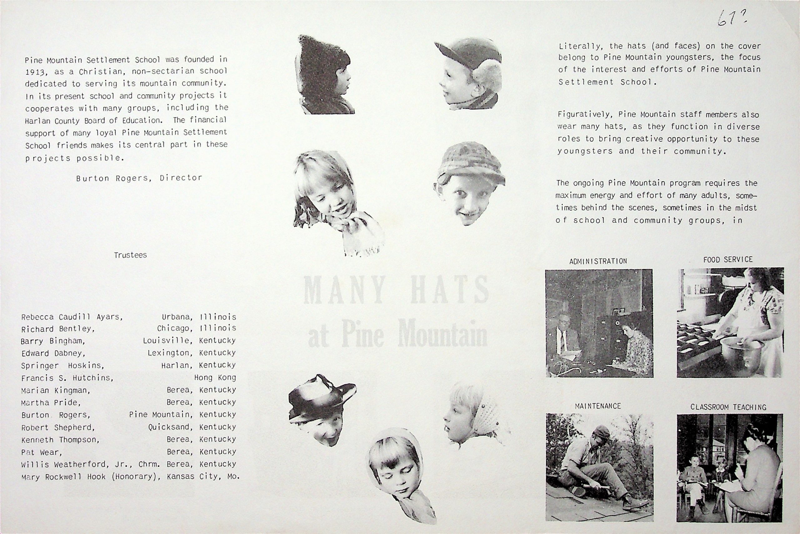 Text: “Pine Mountain staff members also wear many hats, as they function in diverse roles to bring creative opportunity to these youngsters and their community.”