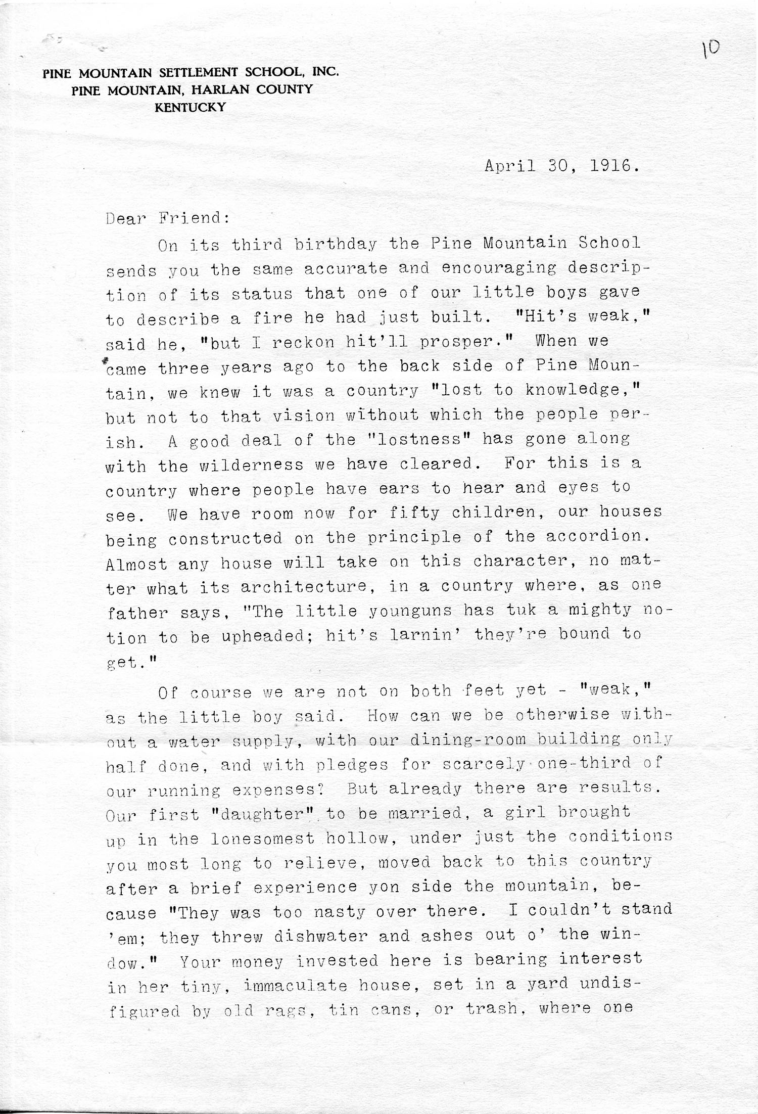 Dear Friend Letter, April 30, 1916