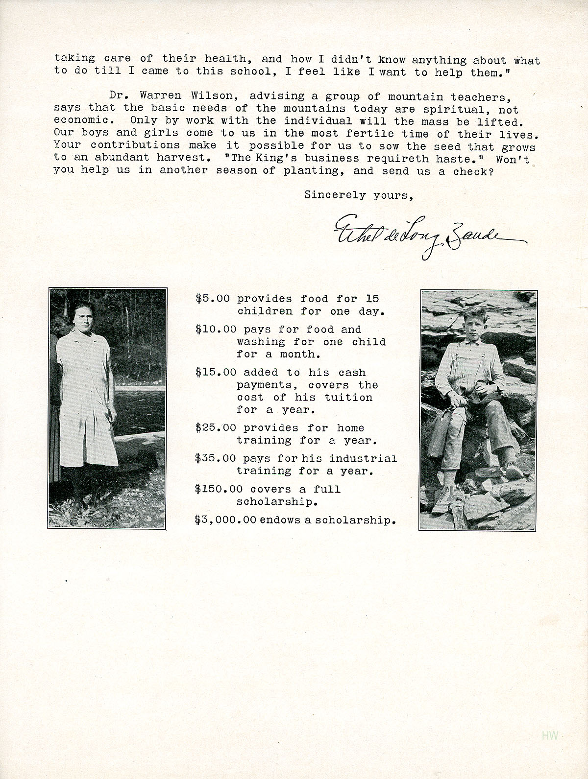 Dr. Warren Wilson, advising a group of mountain teachers says that the basic needs of the mountains today are spiritual, not economic. Only by work with the individual will the mass be lifted. Our boys and girls cone to us in the most fertile time of their lives, Your contributions make it possible for us to sow the seed that grows to an abundant harvest. “The King’s business requireth haste.” Won’t you help us in another season of planting, and send us a check?