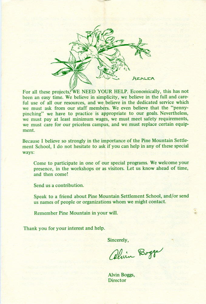 Because I believe so strongly in the importance of the Pine Mountain Settlement School, I do not hesitate to ask if you can help in any of these special ways: