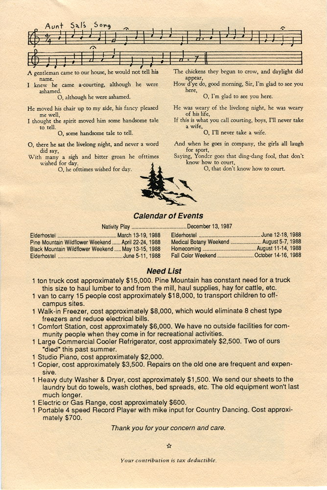 The Lord comes to us all through friends, in times of crisis, in times of tragedy and in time of celebration. Pine Mountain Settlement School’s many dedicated friends have come forward to help the school through a difficult time. We are approaching our 75th birthday of continuous operation, thanks to your support and faithfulness, for helping to see that Pine Mountain Settlement School keeps going. You, like those before you have made Pine Mountain alive and well. Although there is much yet to be done we celebrate your stewardship, yet we dare not stand idle.
