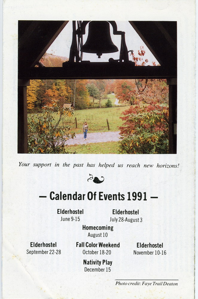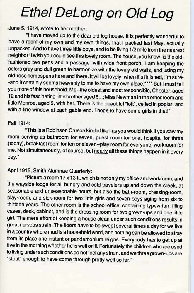 TAGS: NOTES – 1991 FALL, Old Log, history, August Angel, Octet, music, running set, country dancing, Henry Ford, tour, mountain culture, White House, President Roosevelt, Eleanor Roosevelt, Ethel de Long, Miss Newman, Smith Alumnae Quarterly, photographs