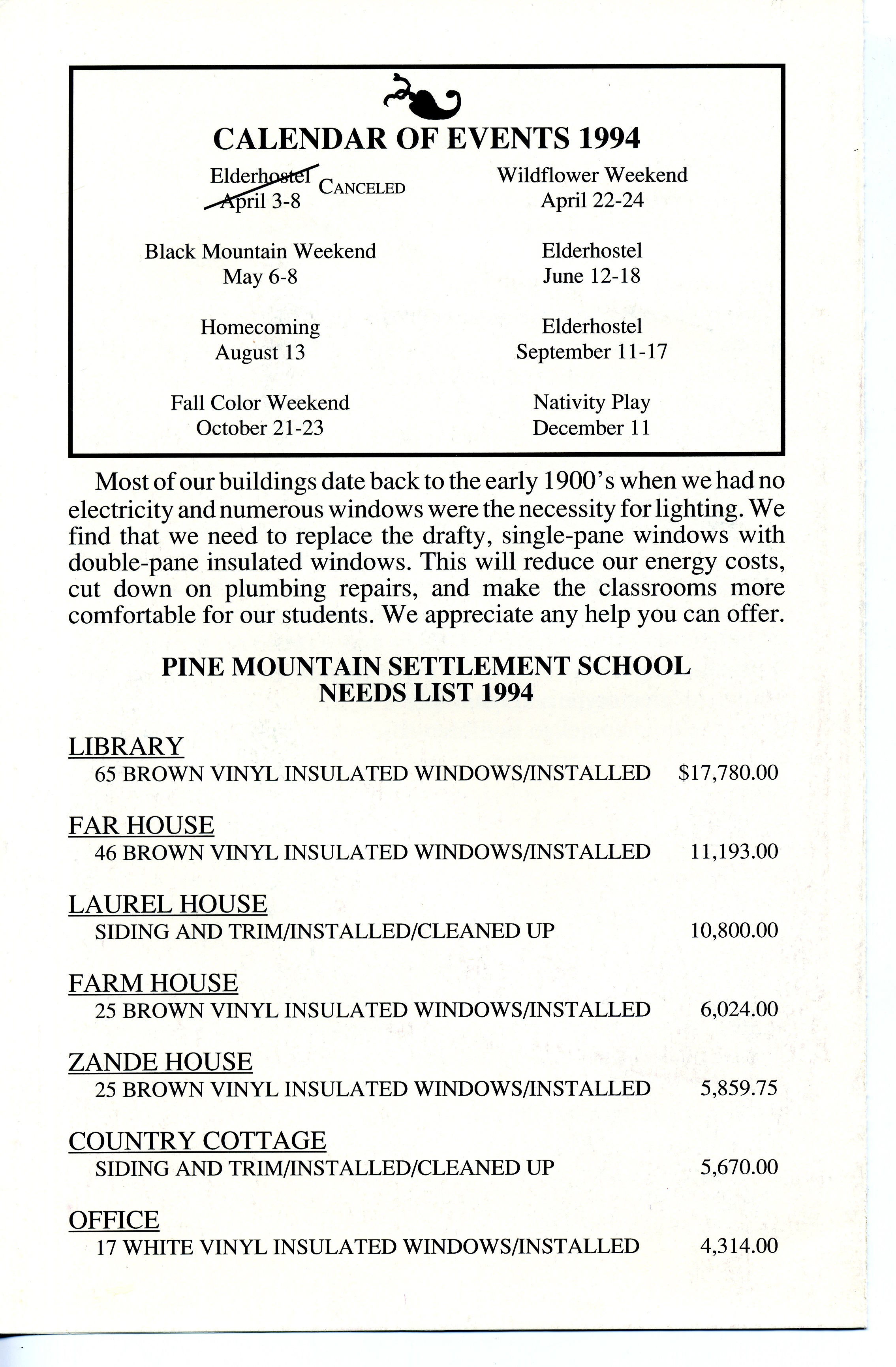 Most of our buildings date back to the early 1900’s when we had no electricity and numerous windows were the necessity for lighting. We find that we need to replace the drafty, single-pane windows with double-pane insulated windows. This will reduce our energy costs, cut down on plumbing repairs, and make the classrooms more comfortable for our students. We appreciate any help you can offer.