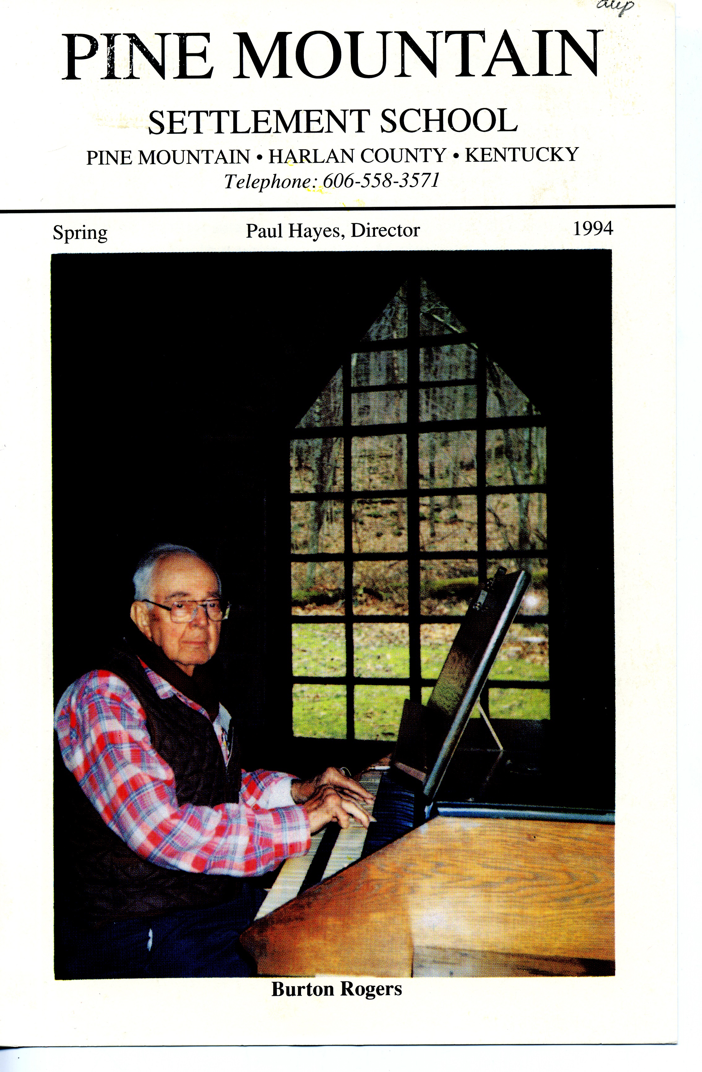 TAGS: NOTES – 1994 Spring, Burton Rogers, biography, boarding school, Berea College, Harlan County schools, elementary program, library, playground, health services, community activities, Environmental Education, Trustees, settlement, Mary Simkhovitch