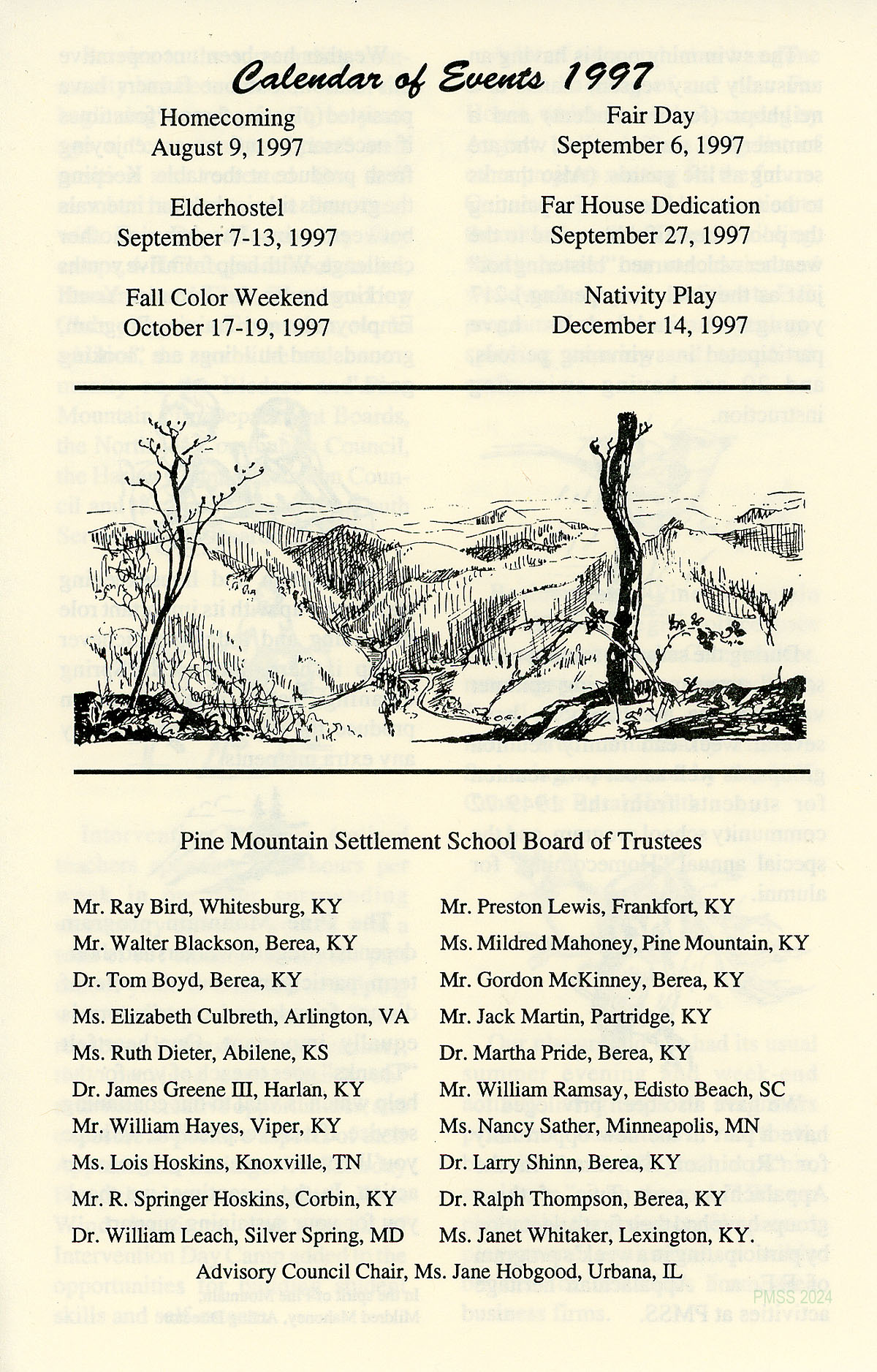 TAGS: PMSS publications, Notes from the Pine Mountain Settlement School, Notes 1997 Summer and Fall, fundraising