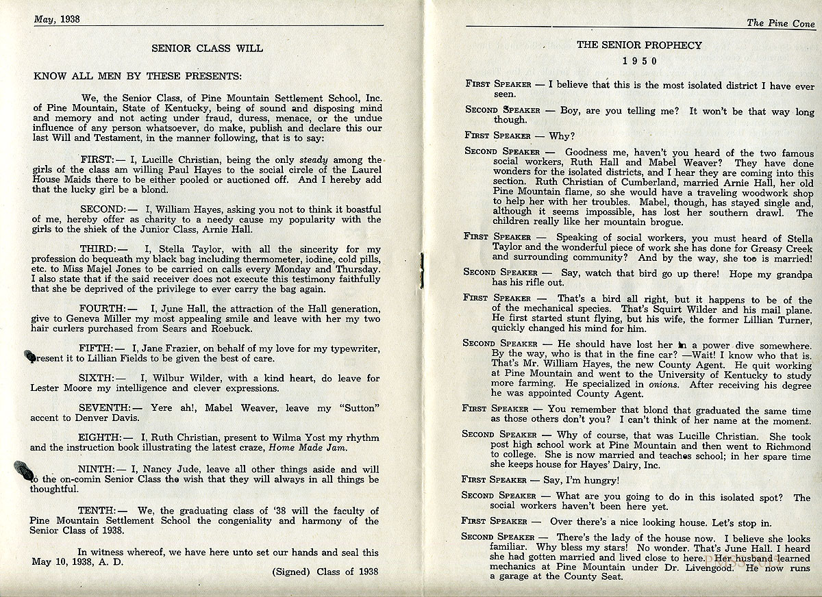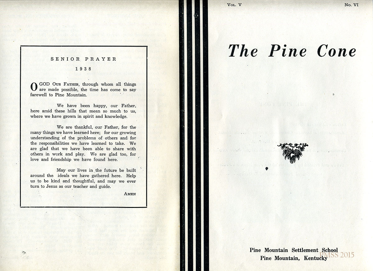 Front cover: “The Pine Cone, Vol. V, No. VI, Pine Mountain Settlement School, Pine Mountain, Kentucky”