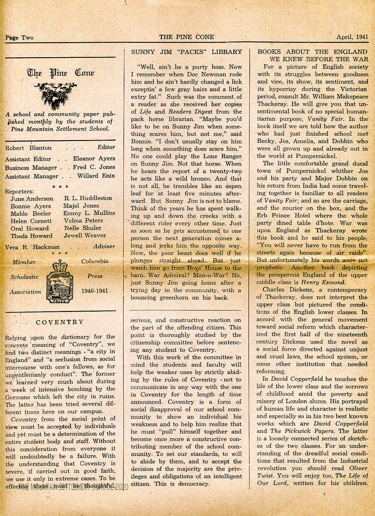 “Member, Columbia Scholastic Press Association 1940-1941.”