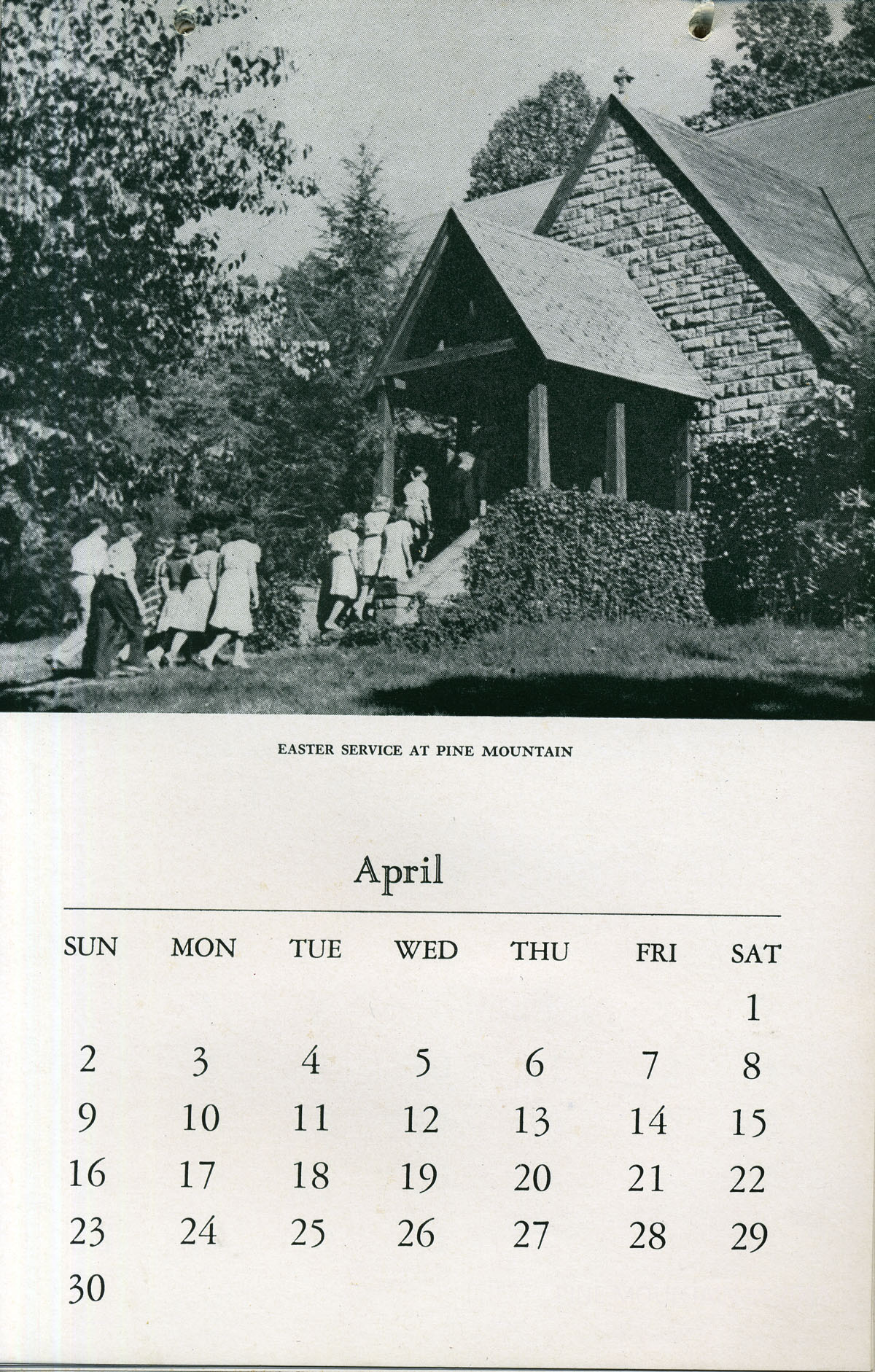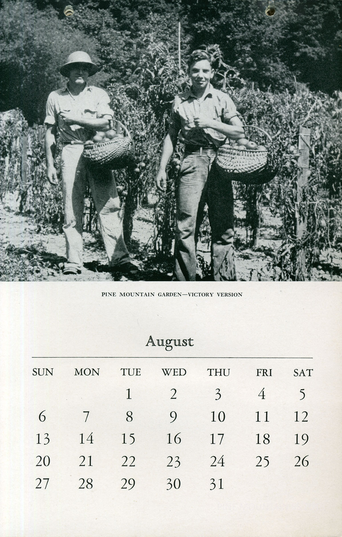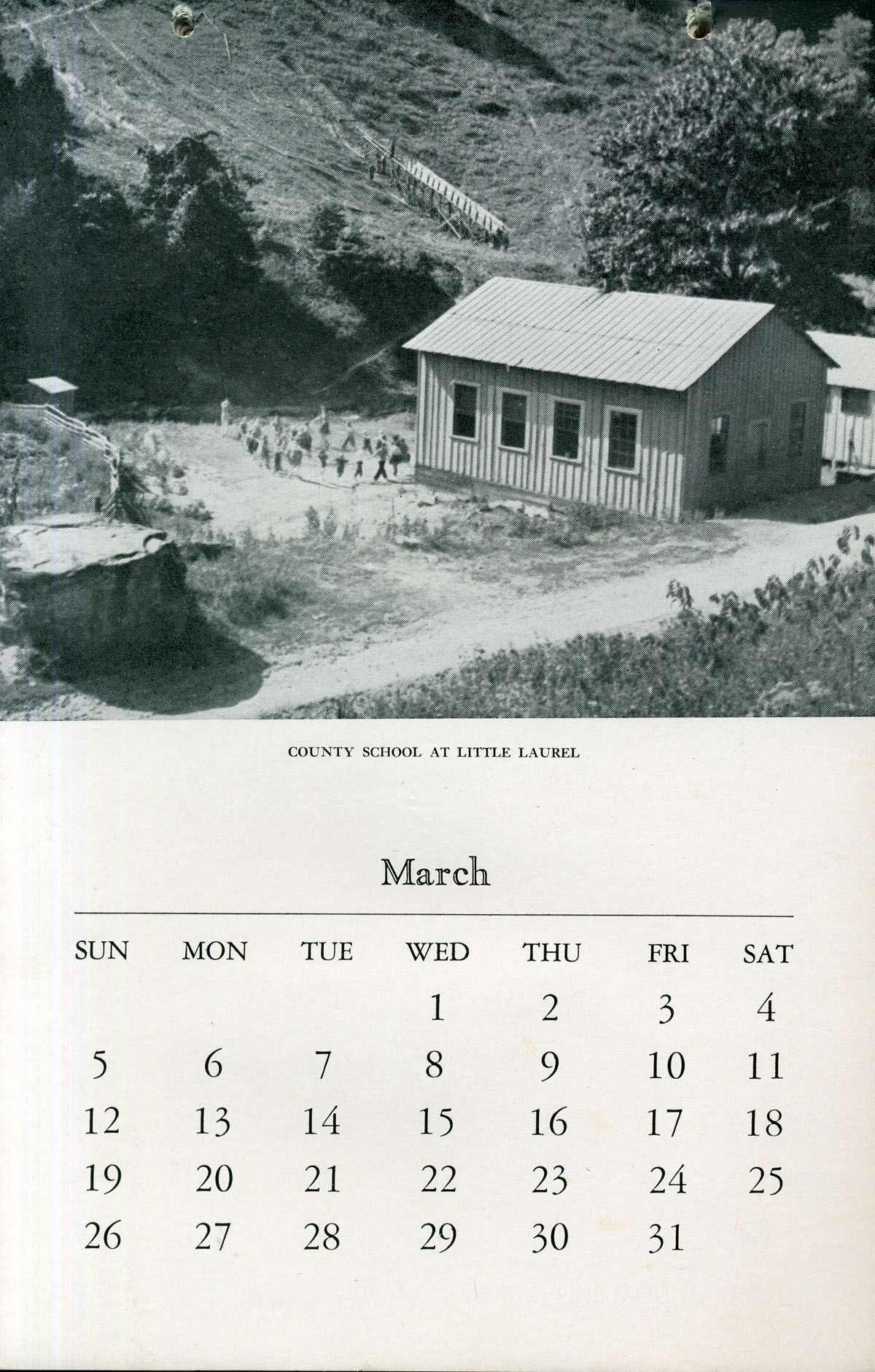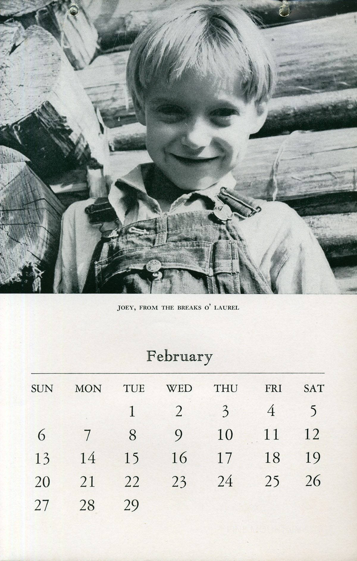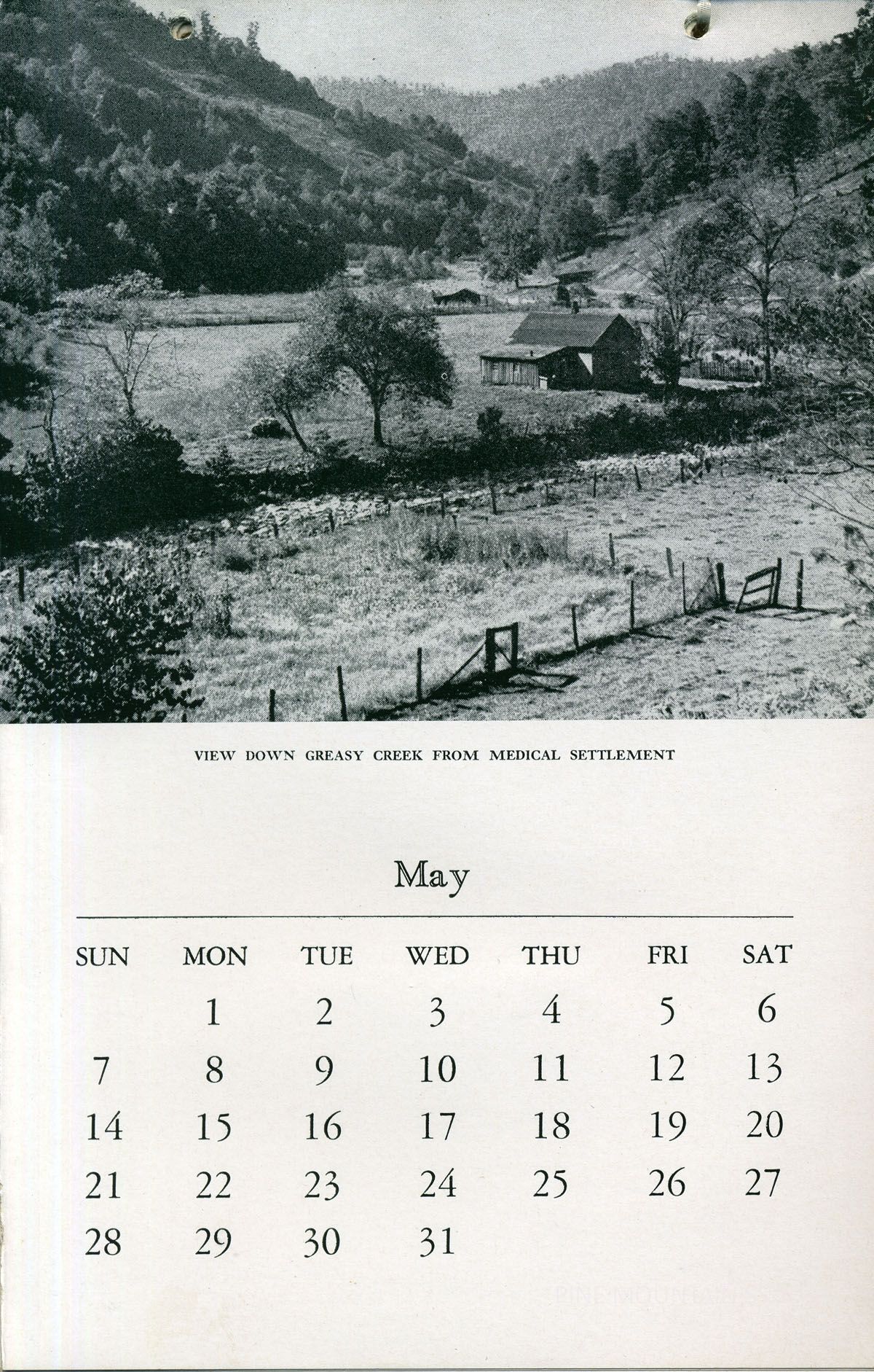 The 1944 Calendar features views of Pine Mountain Settlement School as well as the surrounding community in the early 1940s. The photographs are by Arthur Dodd, the staff photographer and principal and instructor at the School. During his tenure at the School, “Dodd,” as he was called, created many images that were used in publicity and promotion of the institution.