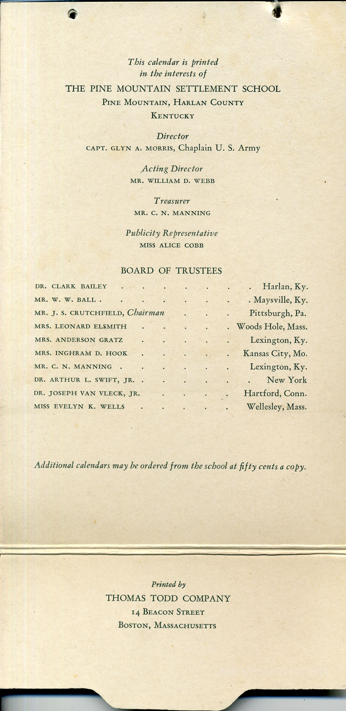 Arthur Dodd, the photographer of the scenes in this calendar, helped to shape the educational program at the School in the role of principal at the School. The educational programs at Pine Mountain during the years of Glyn Morris‘ direction and into the years of WWII, produced some of the most outstanding educational training and social work within the rural settlement movement and in deeply rural Eastern Kentucky.