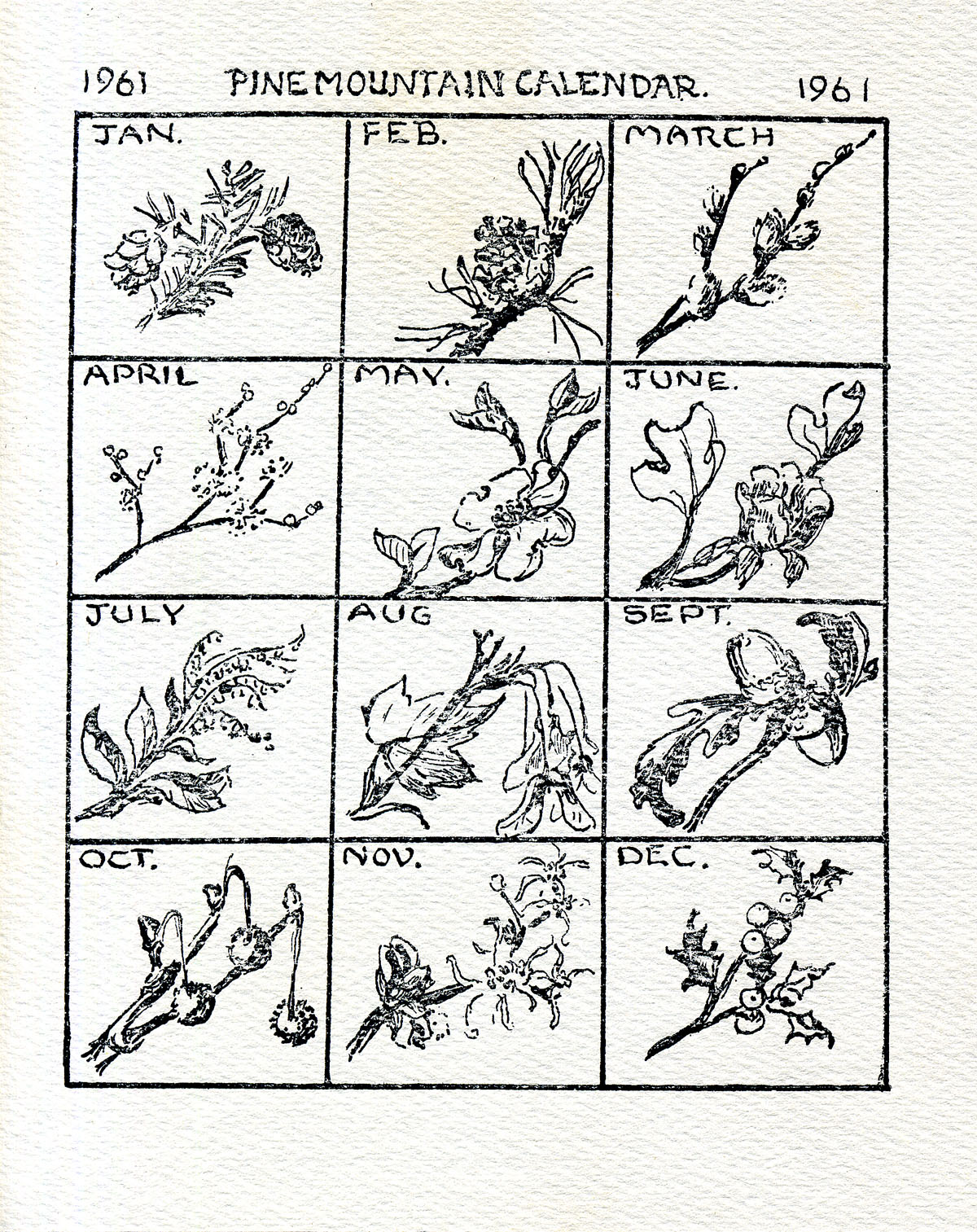 TAGS: calendars, Pine Mountain Settlement School calendars, PMSS 1961 Calendar, Native plants, botany, fundraising, Mary Rogers drawings, botanical drawings
