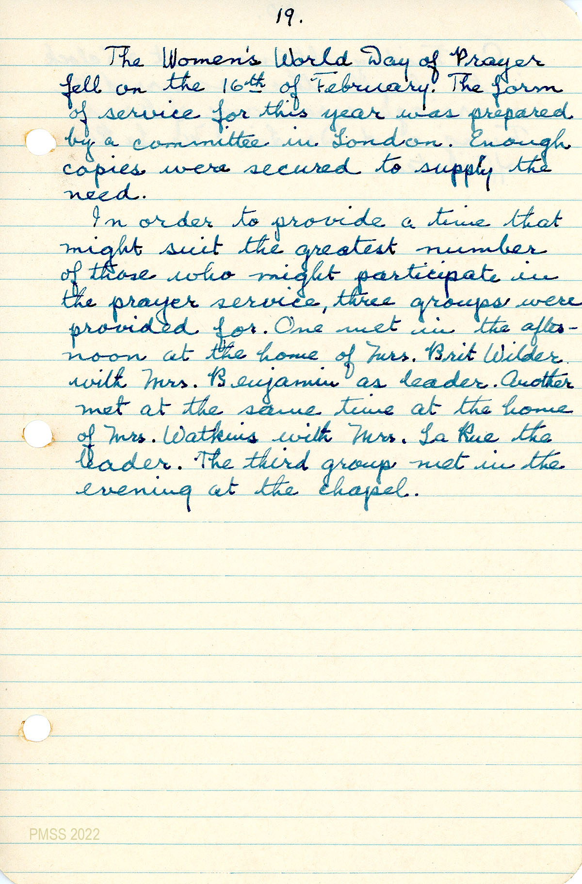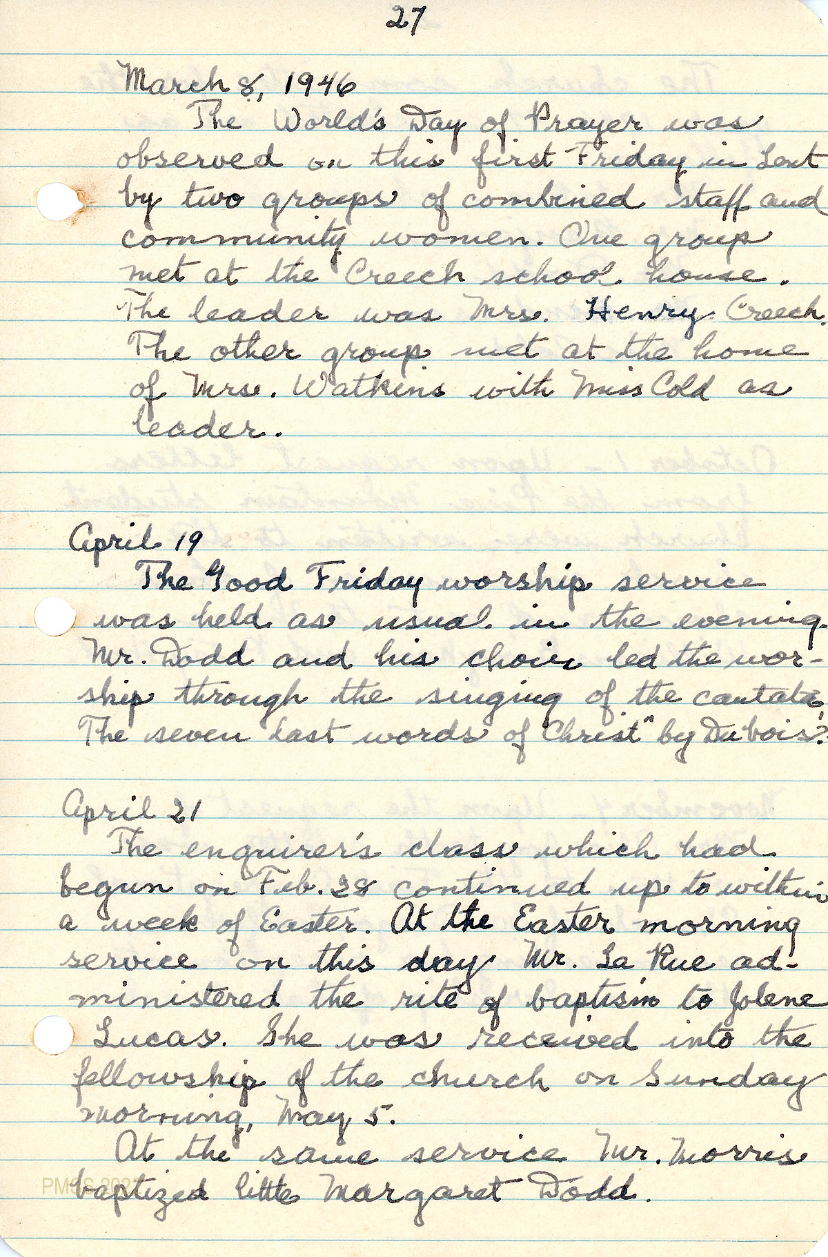 027 March 8, 1946. Observance of World’s Day of Prayer.