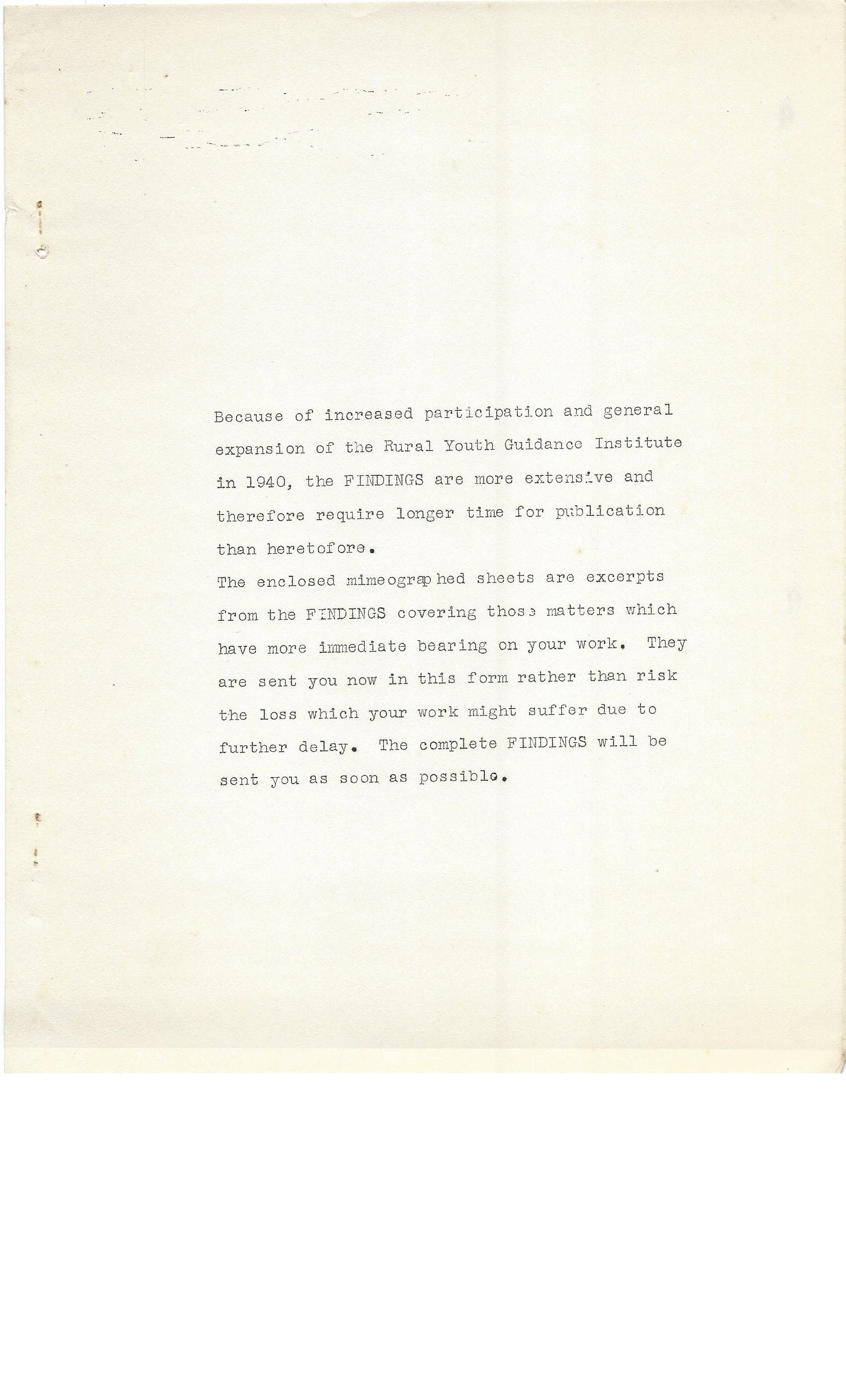 RURAL YOUTH GUIDANCE INSTITUTE 1940 Excerpts From Institute Findings