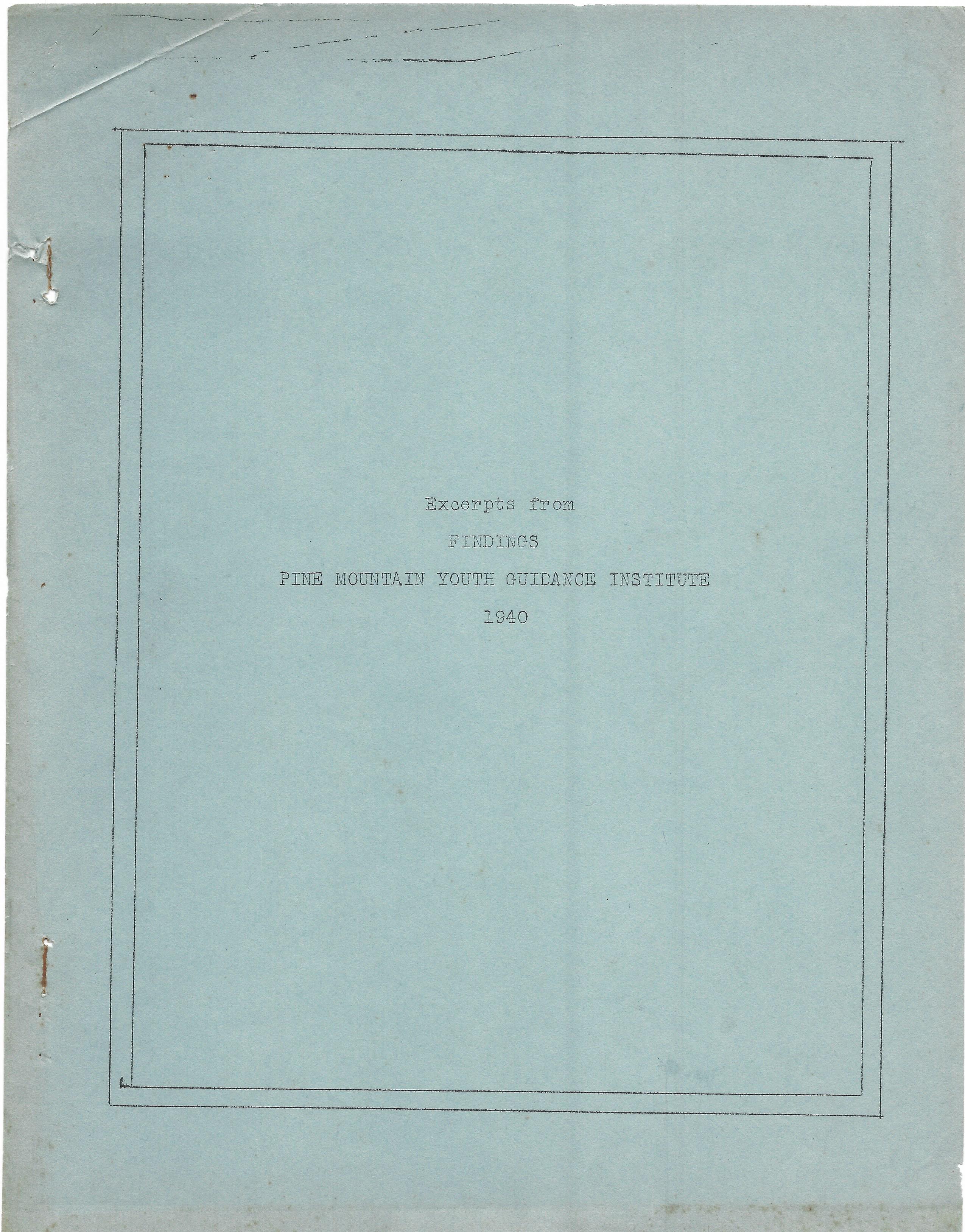 Excerpts from “Findings Pine Mountain Youth Guidance Institute 1940”