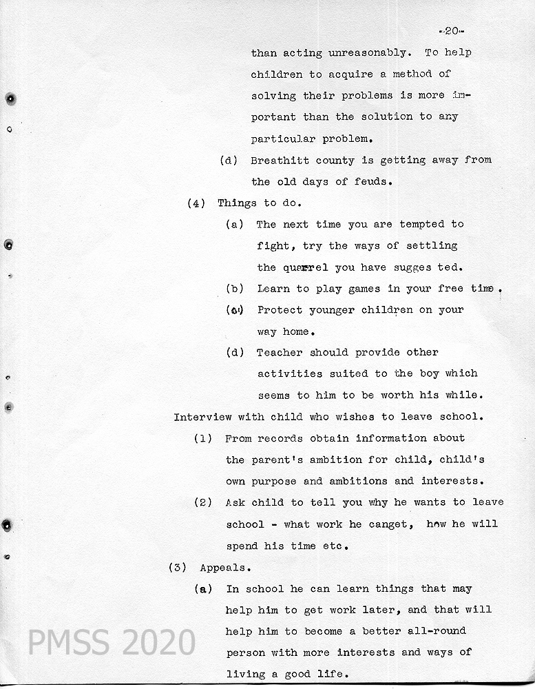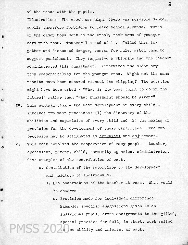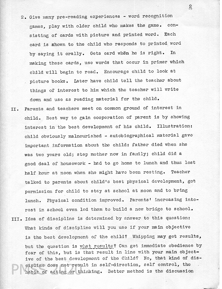 III. Idea of discipline is determined by answer to this question: What kinds of discipline will you use if your main objective is the best development of the child? [Discussion of the issue a better method to use than “whipping.”]