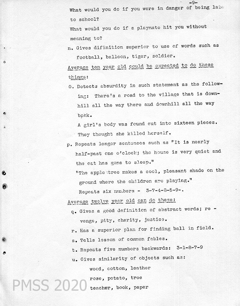 D. Questions and problems that give indication of the child’s mental ability. … [Defines “intelligence” and provides examples of tests and questions.]