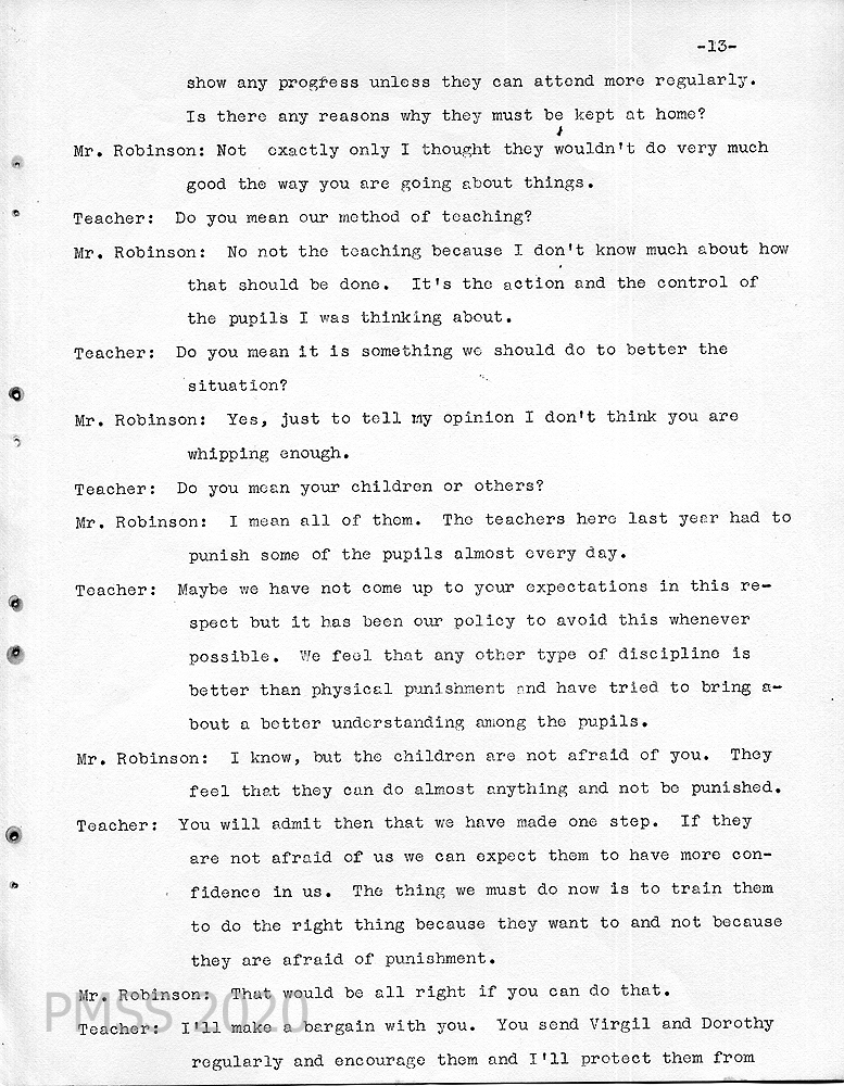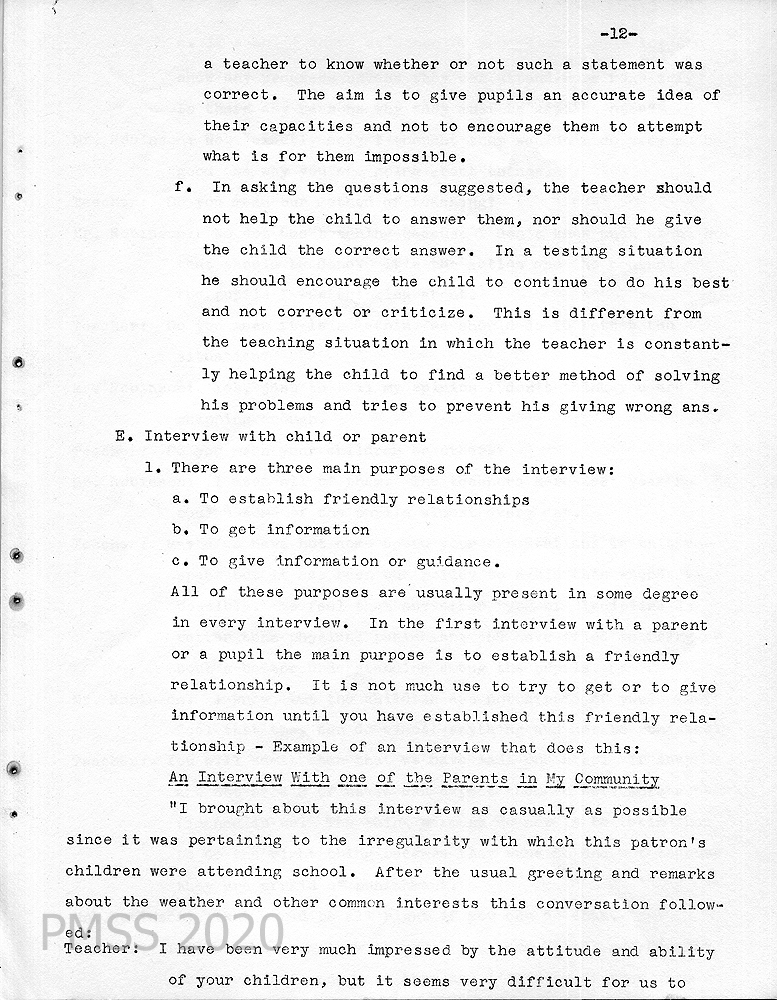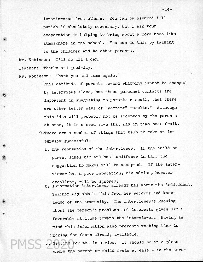 [Followup comments to the teacher/parent conversation, including the subject of “whipping.” Provides “a number of things that help to make an interview successful.”]