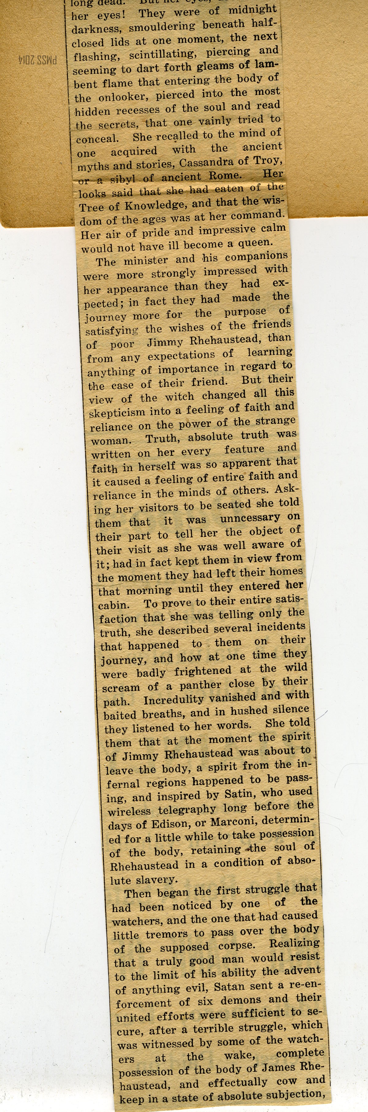 TAGS: local history scrapbook, A Strange Tale of Demoniacal Possession, demons, churches, religion, witches, devil, prayer, evil spirits, Jimmy Rhehaustead, Witch of the Mountains
