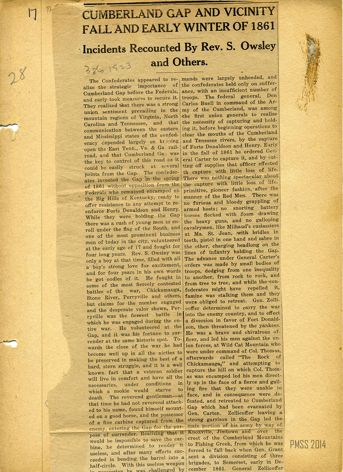 Cumberland Gap and Vicinity Fall and Early Winter of 1861 Part II. Incidents Recounted By Rev. S. Owsley and Others. [Page 17 & 17a]