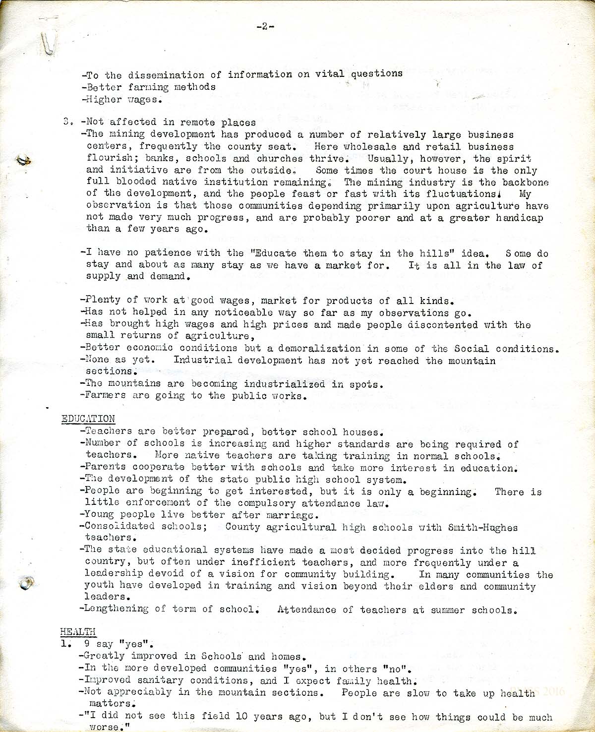 More and more, the remote sections will be confronted with changed industrial conditions, which can be met with less loss if the people are prepared with better education, knowledge of better living conditions, and higher ideals for children.