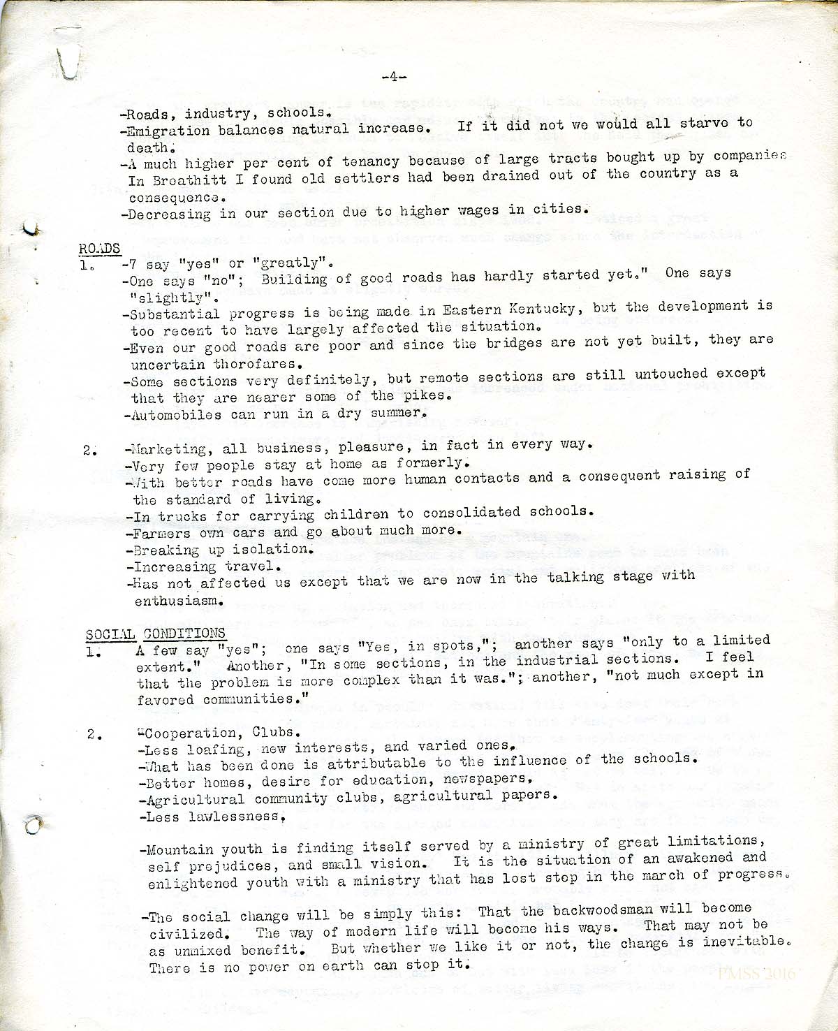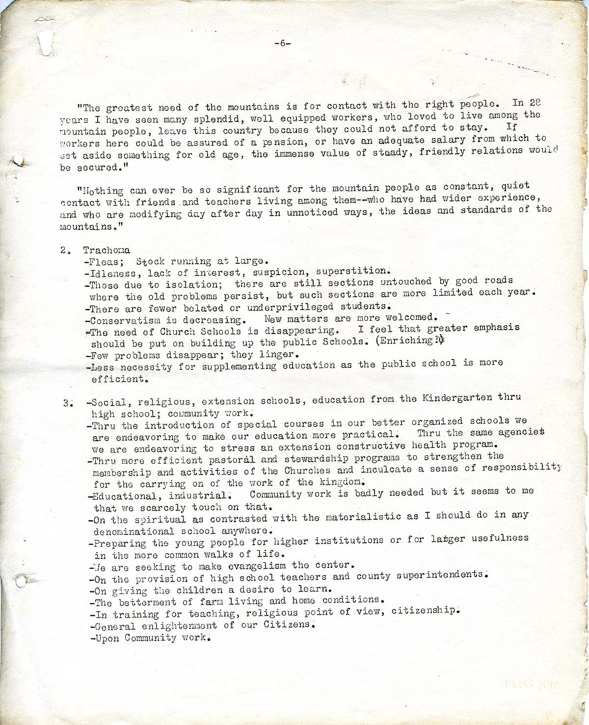 This survey, located on page 38 in the Scrapbook Before 1929, cites a comment made by Katherine Pettit in “Progress in the Hills,” an article in the magazine, The Survey, May 15, 1923. In Pettit’s comment, she focuses on several aspects that resonate with the concerns seen in the “Shifting Aspects …” survey.