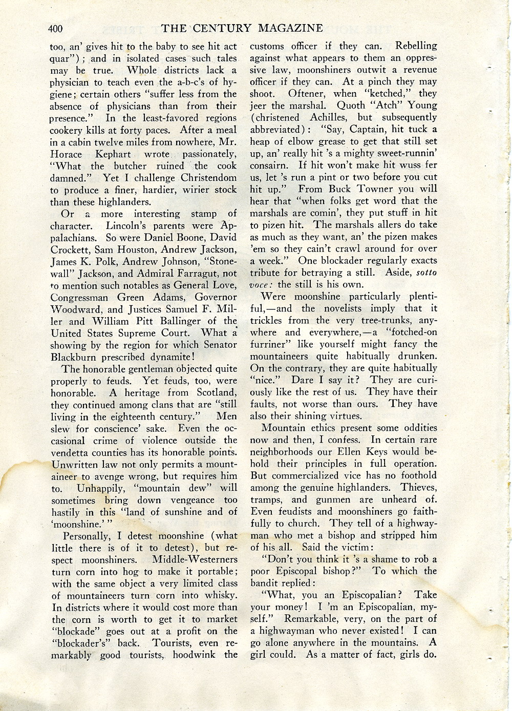 TAGS: Scrapbook before 1929, Rollin Lynde Hartt, John Wolcott Adams, The Century Magazine, The Mountaineers Our Own Lost Tribes, Shakespearean English, Central Appalachian mountaineers