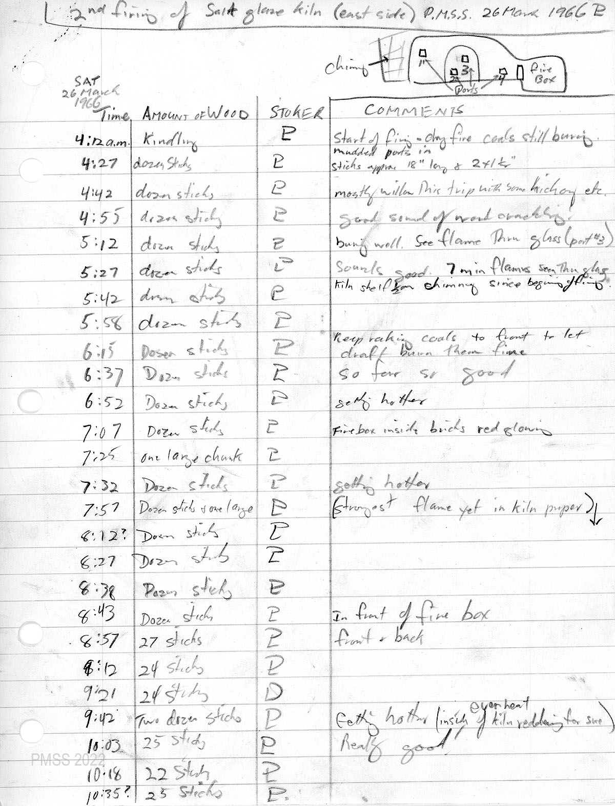 - PINE MOUNTAIN SETTLEMENT SCHOOL. 26 MARCH 1966. 2nd FIRING OF SALT-GLAZE KILN (EAST SIDE). [Includes diagram] 5 pages.