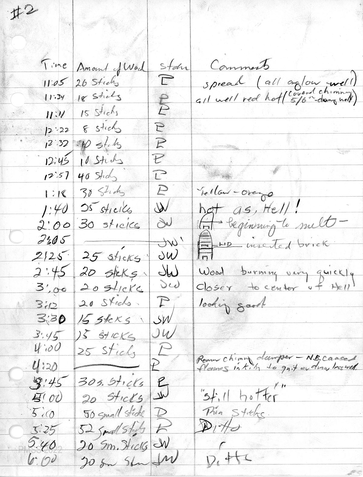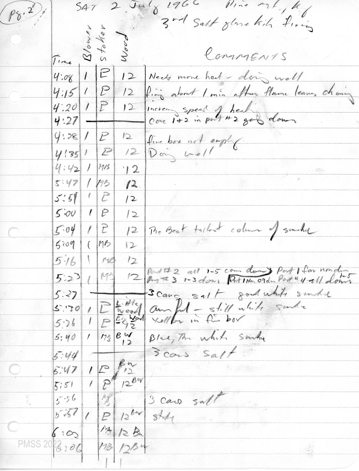 002a December 17, 1965 through December 18, 1965. First test firing of home-built kiln (east-side), wood-fuel (various), salt glaze. Report and analysis. PAUL LYNN (p. 2)
