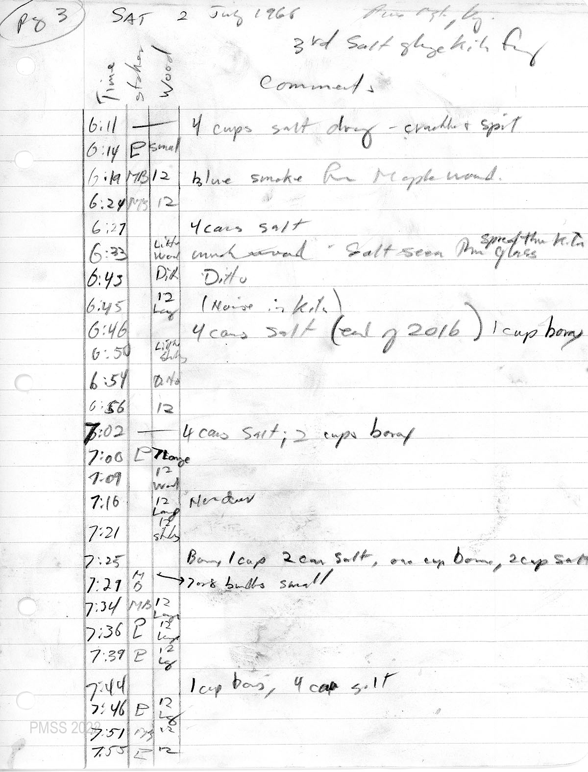- PINE MOUNTAIN SETTLEMENT SCHOOL NOTES ON July 1-2, 1966. NOTES ON SALT-[glaze] KILN FIRING #3. c. cone 5. (4 pages).