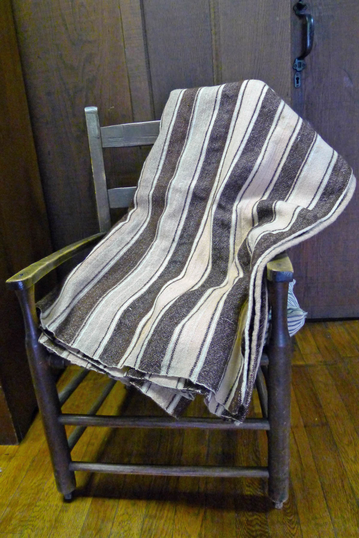 - White wool and walnut dyed striped coverlet. weaving_pmss_01_mod