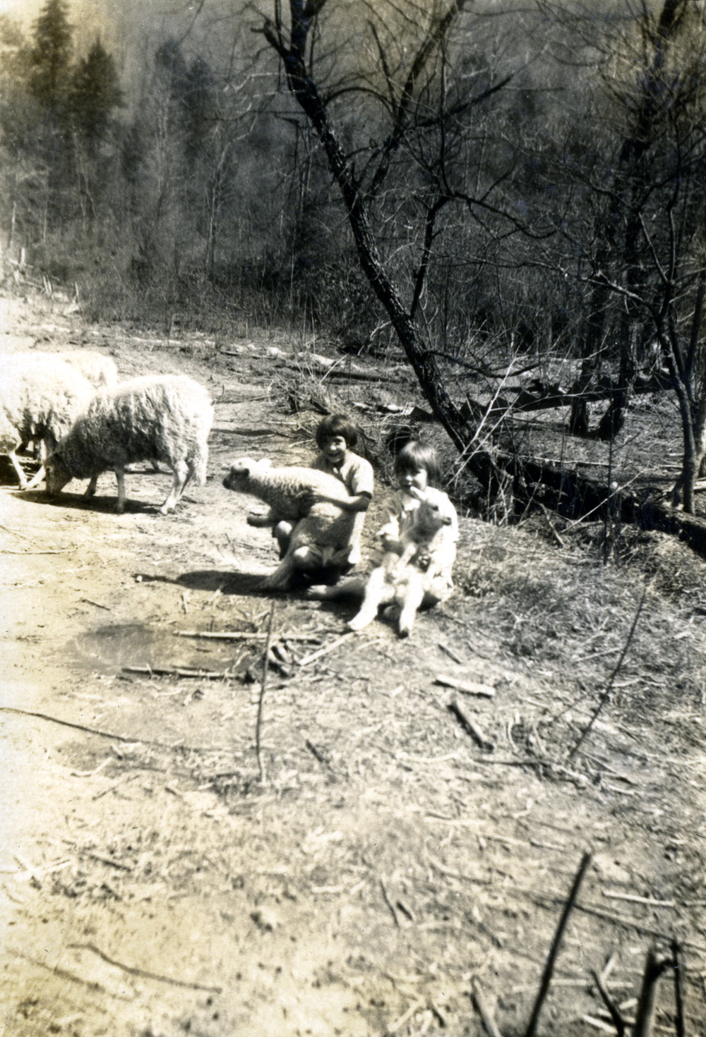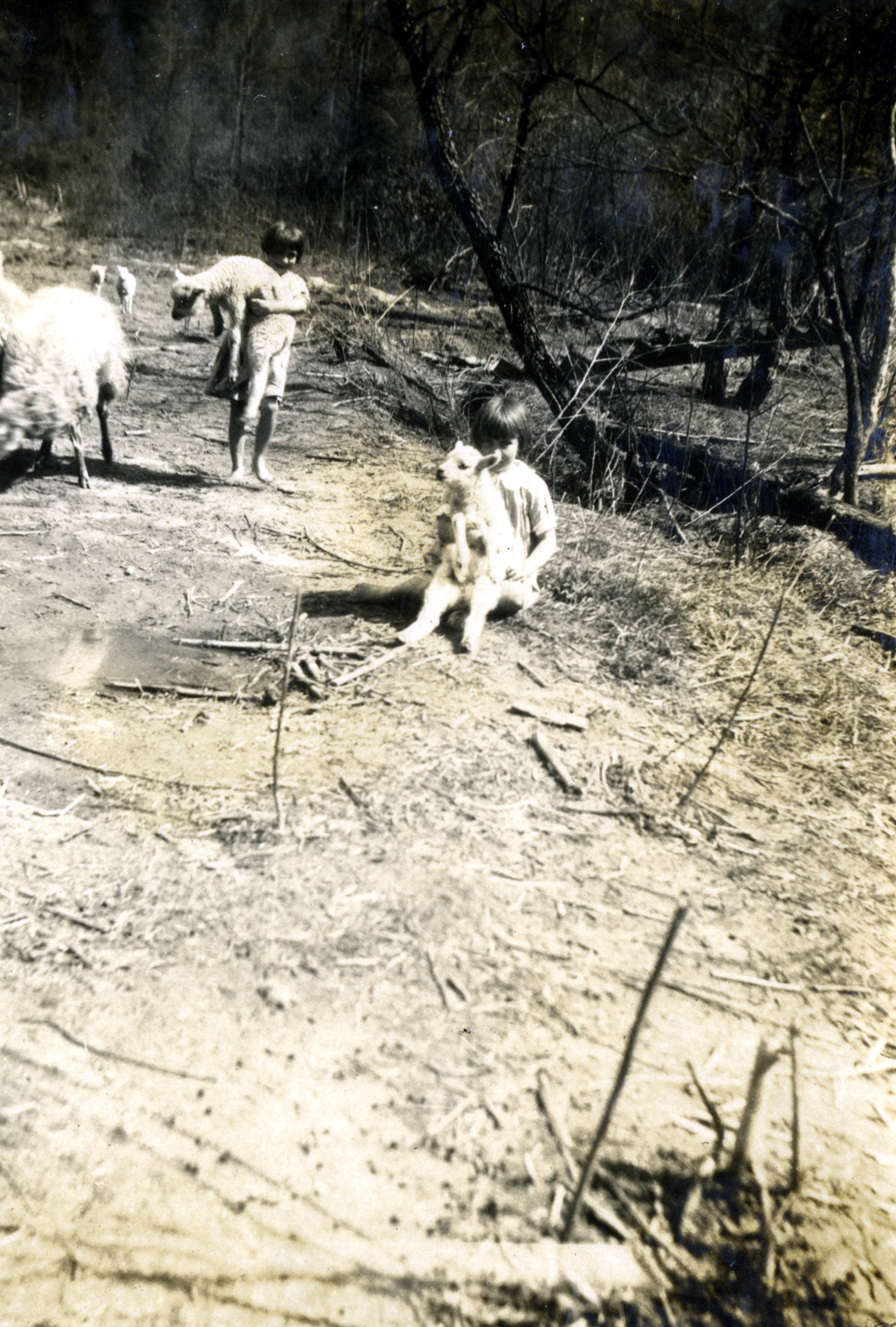 Margaret Motter Album – Children playing with sheep and lambs. mott_202-.jpg